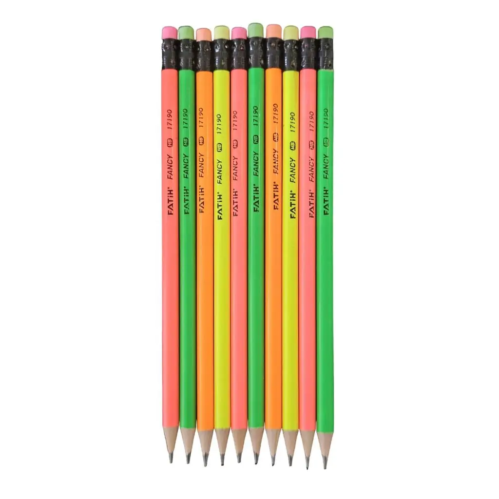- 10 adet neon renkli silgili HB kurşun kalem, yazım deneyiminizi canlılıkla buluşturur.; - Çok renkli tasarımıyla dikkat çeken bu kalemler, her türlü yazı işinizde stilinizi yansıtmanızı sağlar.; - Türkiye'de üretilen bu kalemler, yerel üretim kalitesini ve güvenilirliğini temsil eder.
