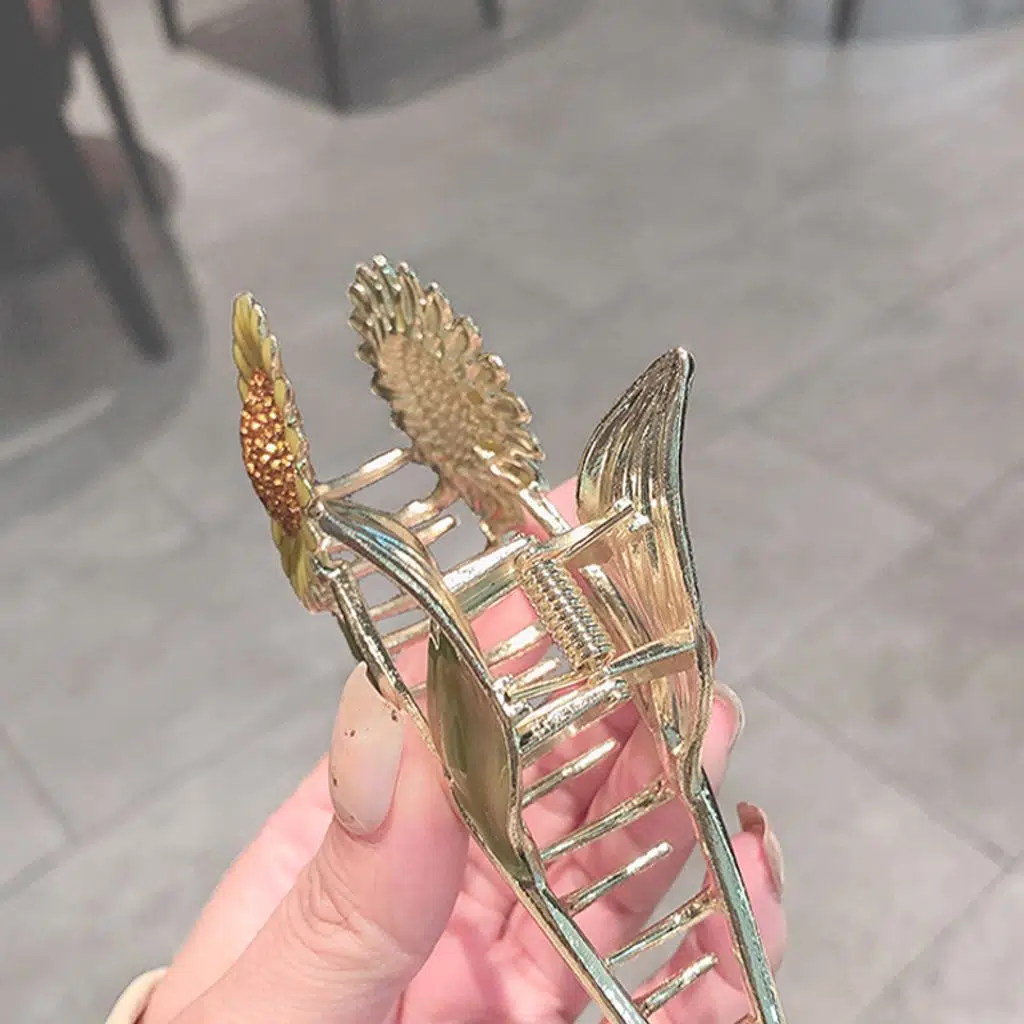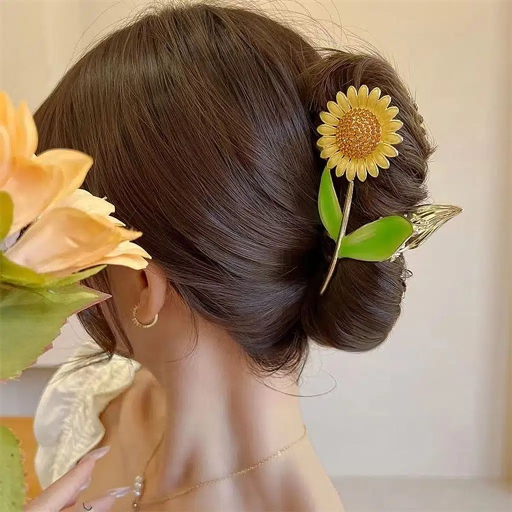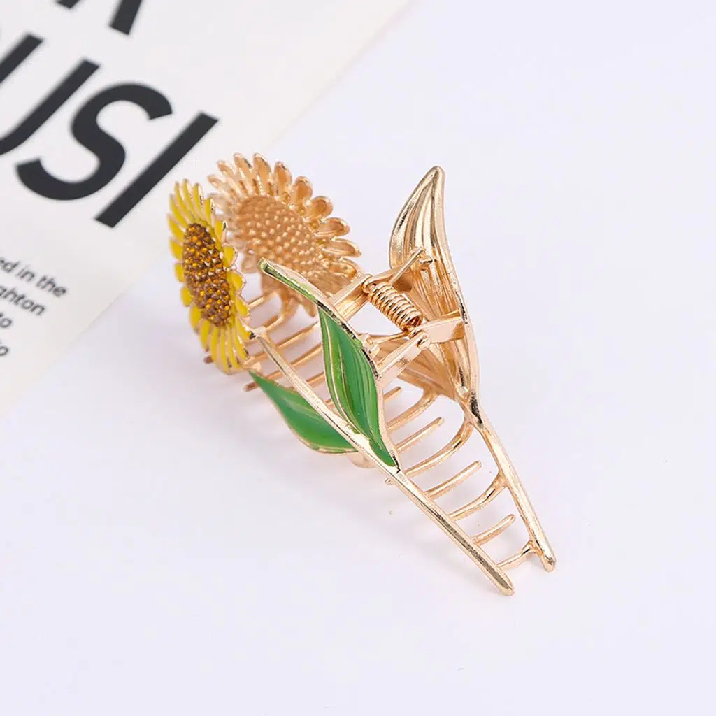 12 cm Ayçiçeği Model Gold Saç Tokası, canlı sarı ve yeşil tonlarıyla dikkat çeken çiçek tasarımı sayesinde saçlarınıza hem doğallık hem de zarafet katıyor. Parlak gold metal detayıyla kombinlerinize ışıltı eklerken, güçlü mandal yapısı sayesinde saçları sıkıca kavrar ve gün boyu sabit tutar.