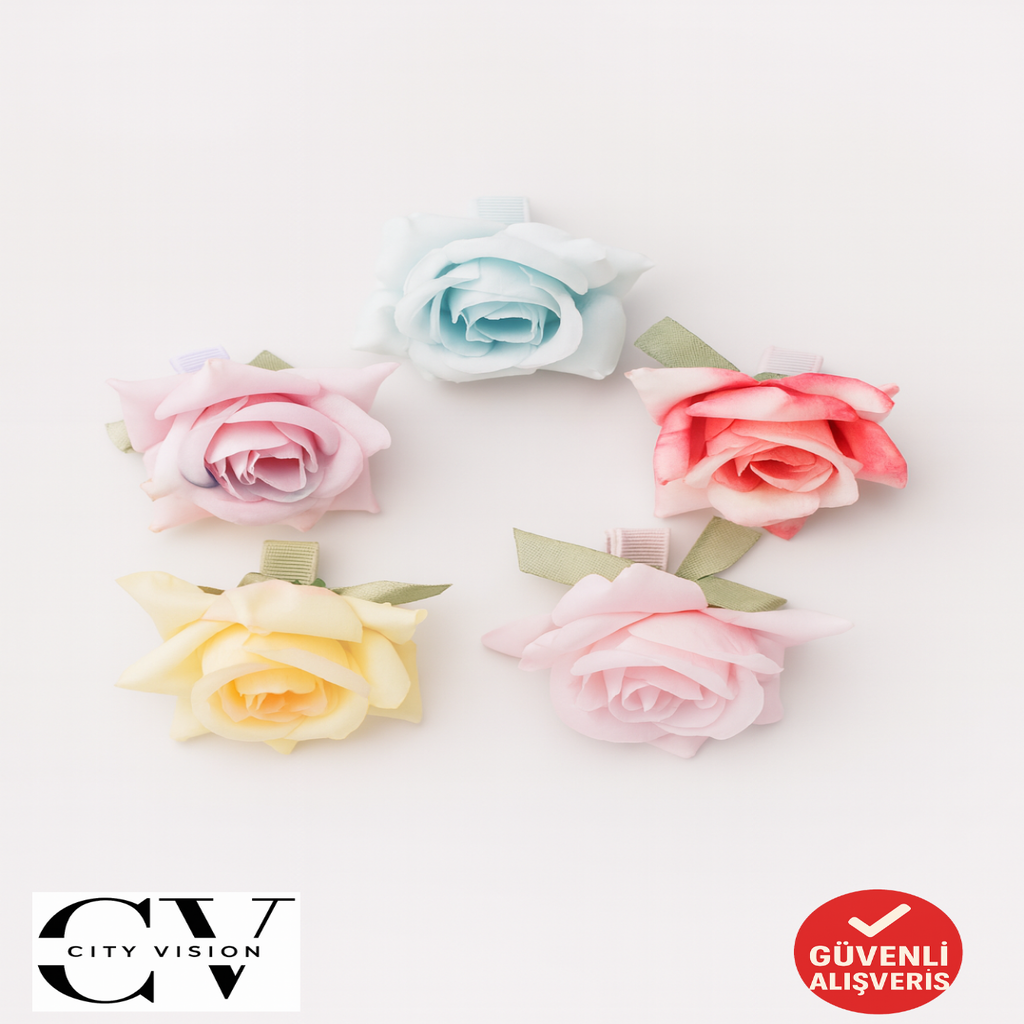 5'li Çiçek Desenli Saç Tokası Seti – 5 cm Renkli Gül Model Mandal Tokalar