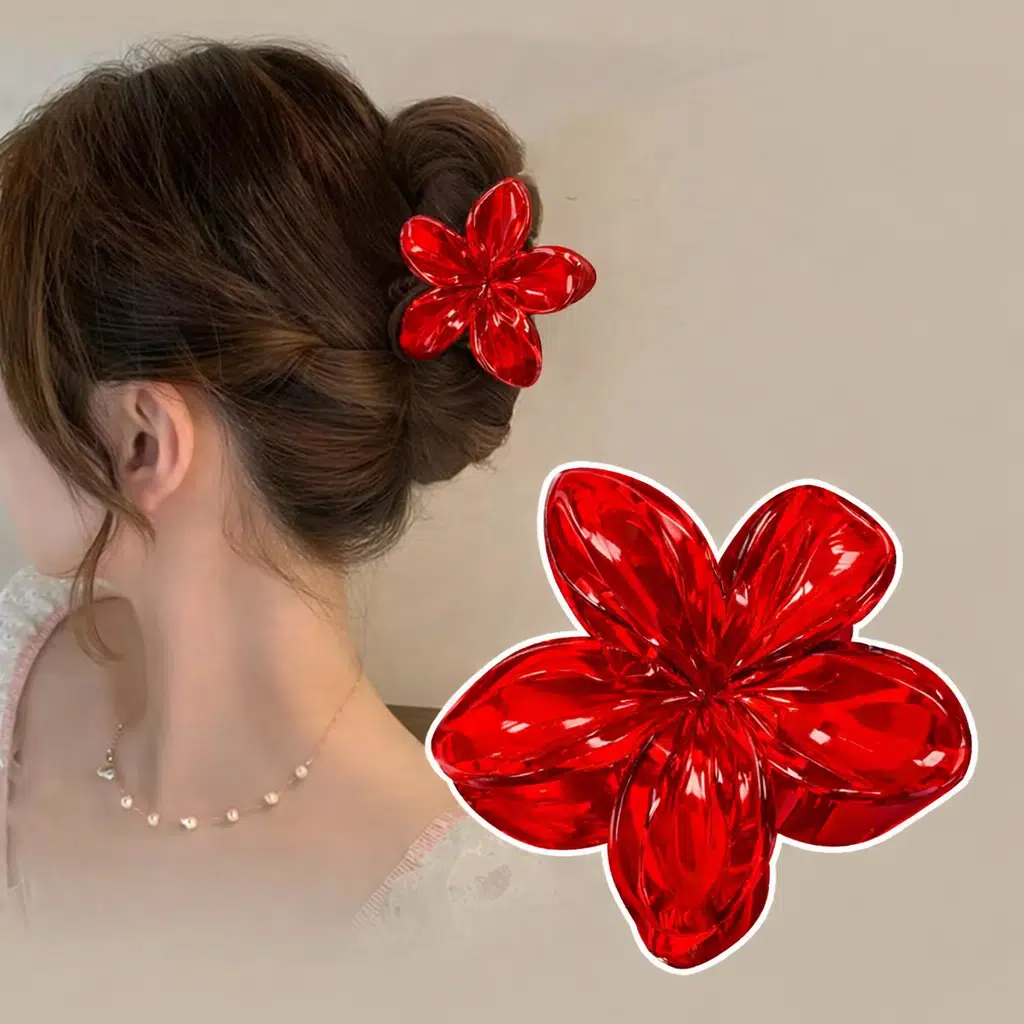 6 adet Kırmızı Renk Lotus Mandal Saç Tokası 8 cm Büyük Boy-Hafif ve Dayanıklı - Kına Nişan Hediyelik