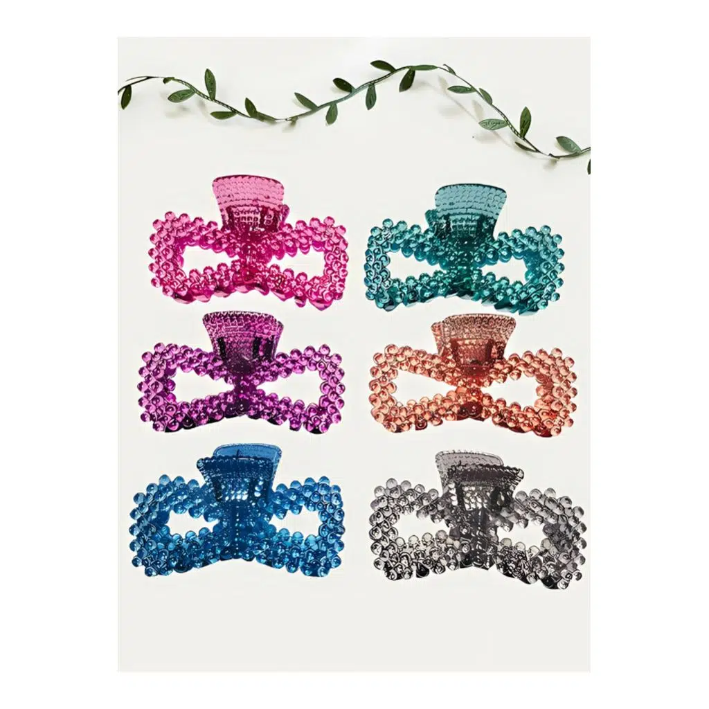 - 6 farklı şeffaf renkte, her biri 8 cm uzunluğunda ve orta boyda tasarlanmış papyon saç tokaları ile stilinizi kişiselleştirin.; - Hafif yapısı sayesinde saçınıza ekstra ağırlık yapmadan rahatça kullanabilirsiniz; dayanıklılığıyla uzun süreli kullanım sunar.; - Poliamid materyali ile üretilmiş olup, kristal plastikten yapılmıştır; bu da hem estetik hem de fonksiyonel bir deneyim sağlar.; - Kadın ve kız kullanıcılar için ideal olan bu ürün, yetişkinlerin de tercih edebileceği geniş bir yaş grubuna hitap eder.; - Tek beden seçeneğiyle herkes için uygunluk gösterirken, poliamid malzemesinin hafifliğiyle konforlu bir kullanım vaat eder.