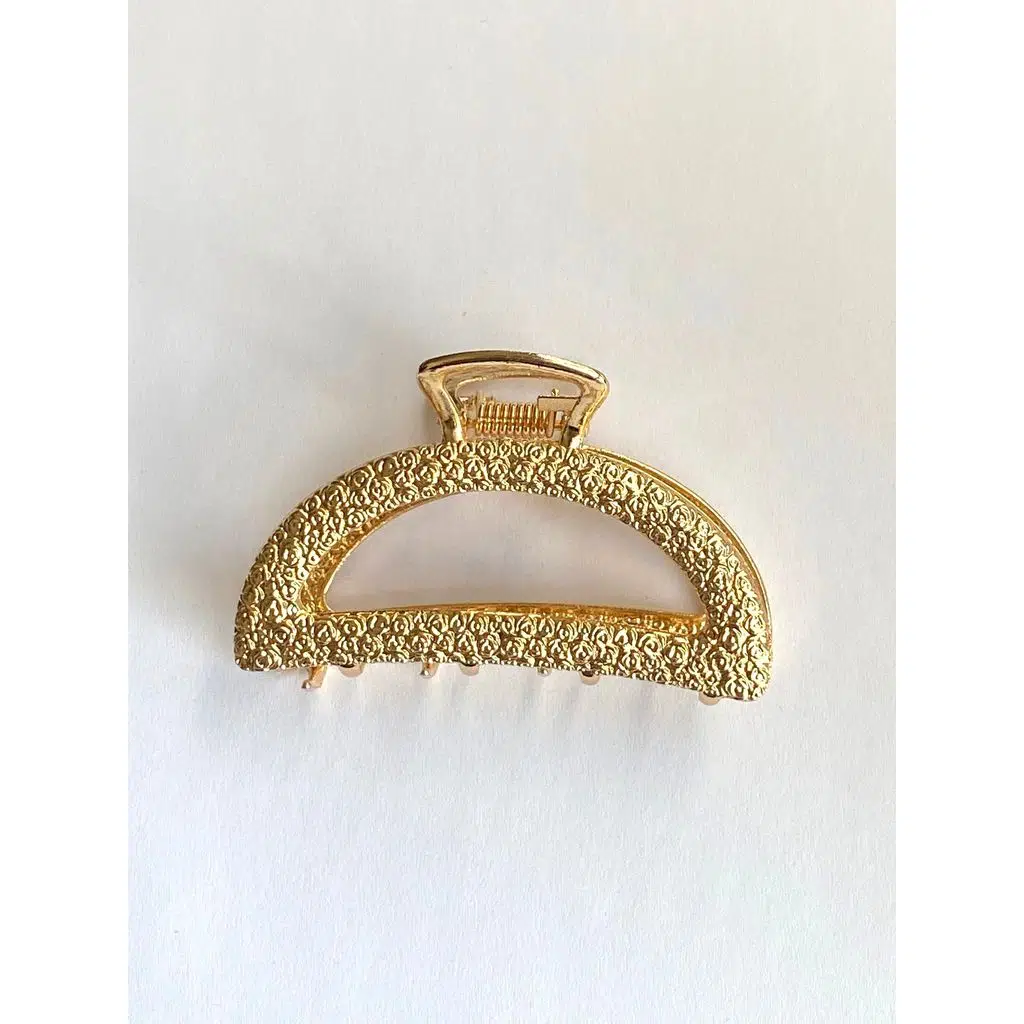 7 cm Gold Metal Saç Tokası, ince işçilikli desenli yüzeyiyle zamansız bir zarafet sunar. Altın tonundaki parlak görünümü, hem günlük kombinlere hem özel davet stillerine sofistike bir dokunuş katar.