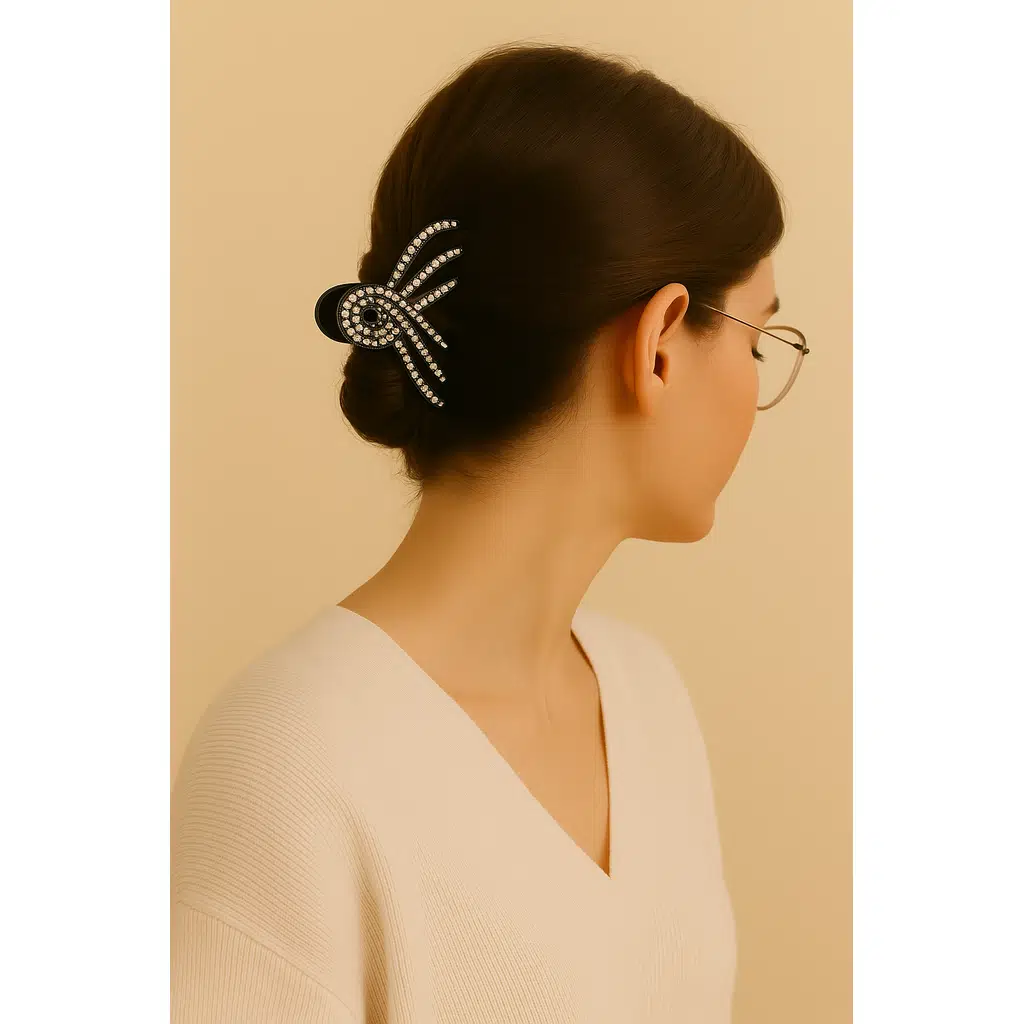 7 cm Siyah Taşlı Dal Formu Saç Tokası, özgün dal tasarımı ve ışıltılı taş detaylarıyla saçlara şık bir dokunuş kazandırır. Parlak taşlarla süslenmiş kavisli hatları, ışığı her açıdan yansıtarak zarif bir ışıltı oluşturur.