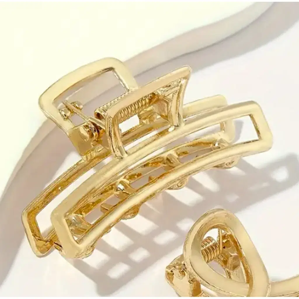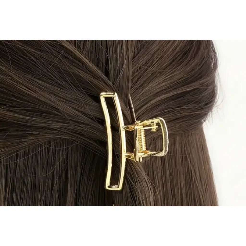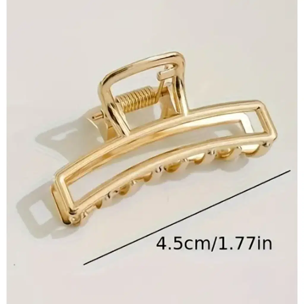 Saçlarınıza şıklık katacak altın renkli dikdörtgen metal mandal saç tokası ile gün boyu konforu ve zarafeti bir arada yaşayın.