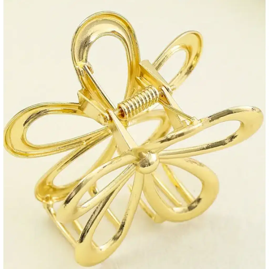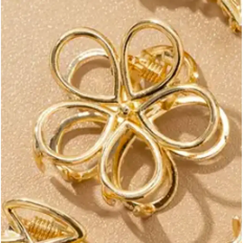 Günlük kullanımda şıklığınızı tamamlayacak 4 cm metal çiçek mandal toka, hem zarif tasarımı hem de sağlam yapısıyla öne çıkıyor. Altın renkli çiçek formu sayesinde saçlarınıza modern ve feminen bir dokunuş katarken, güçlü metal mandal mekanizması sayesinde saçınızı gün boyu sıkıca tutar.