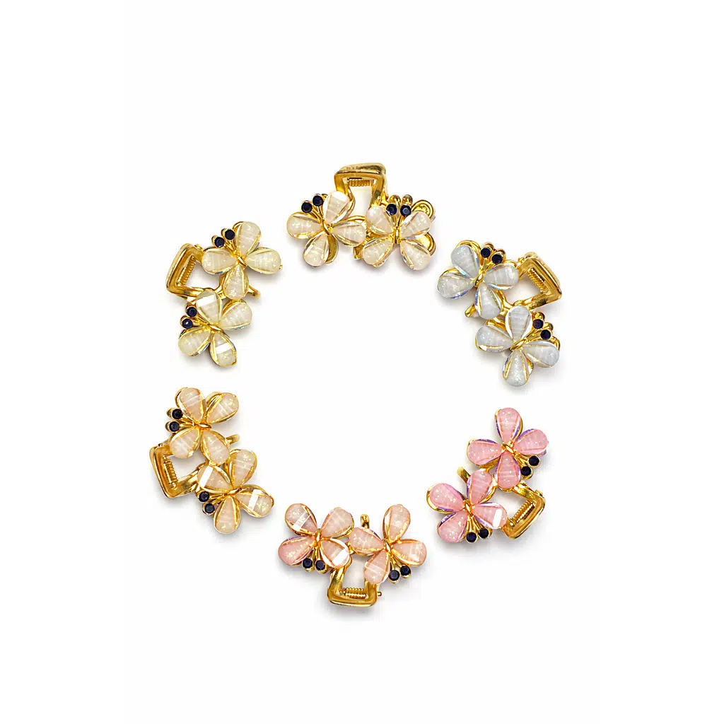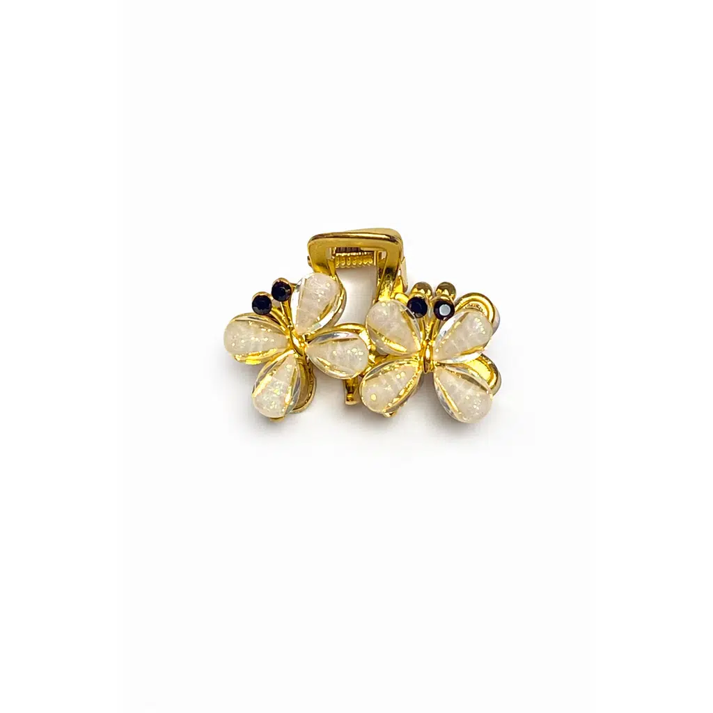 4 cm Beyaz İnci Görünümlü Kelebek Formlu Gold Kadın Saç Tokası, göz alıcı sedef parlaklığındaki kanat detayları ve gold çerçevesiyle şık bir görünüm sunar. El işçiliği taş detayları, ışığı zarifçe yansıtarak hem gündüz hem gece kombinlerinde kusursuz bir tamamlayıcı olur.