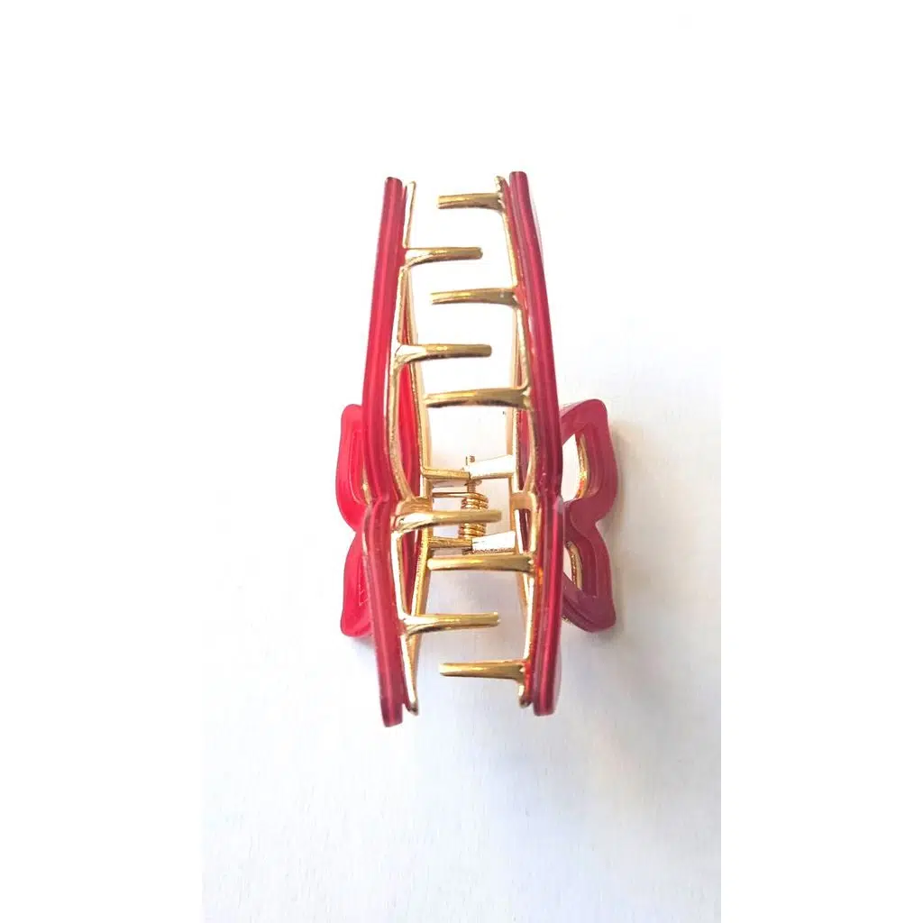 Bordo Renk Asetat Metal Kelebek Saç Tokası 8 cm