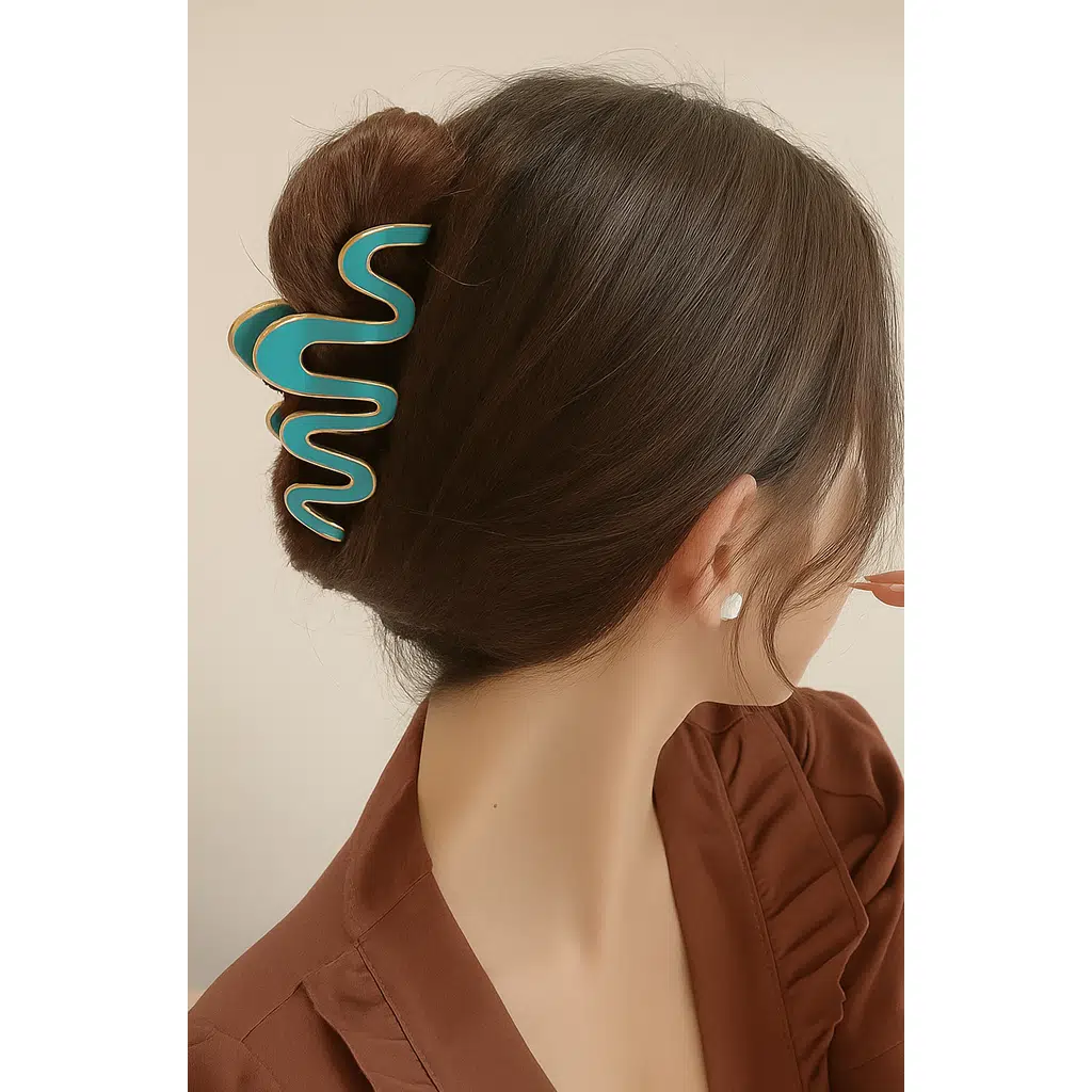 Dalgalı Metal Mandal Toka 11 cm Turkuaz Renk - Şık ve Dayanıklı
