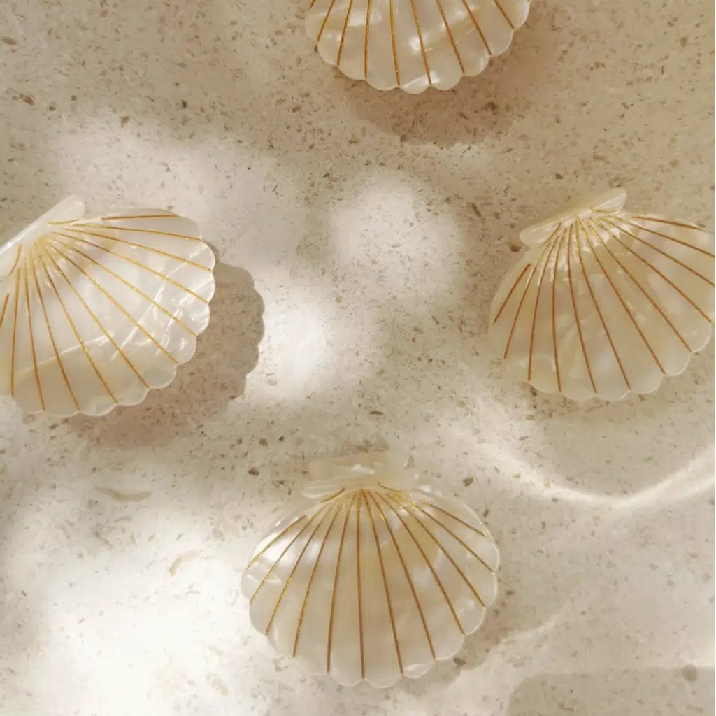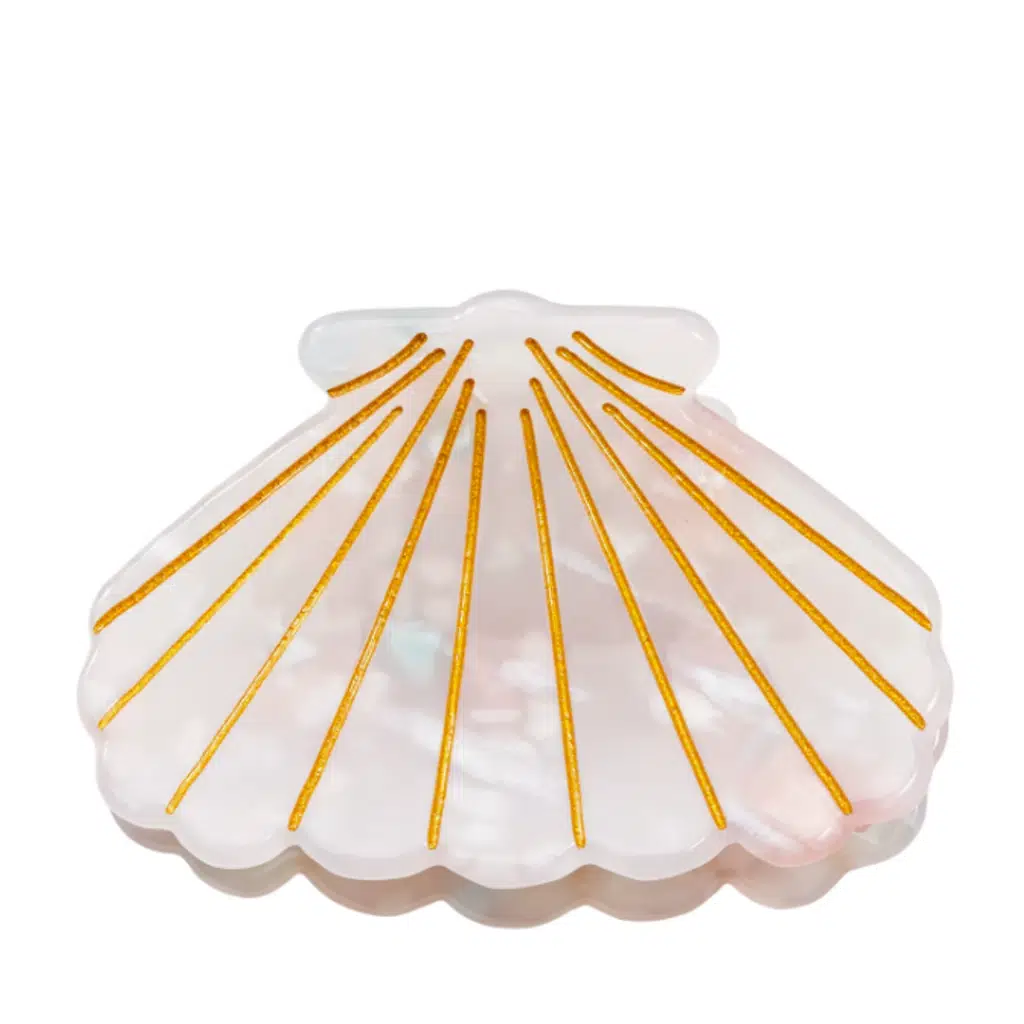 Günlük stilinize zarif bir dokunuş katın! Altın çizgili inci beyazı renkteki deniz kabuğu figürlü saç tokamız, yarım topuz ve yarım toplu saç modelleri için mükemmel bir tercih. Hem modern şehir hayatına hem de sahil esintili yaz kombinlerine uyum sağlar.