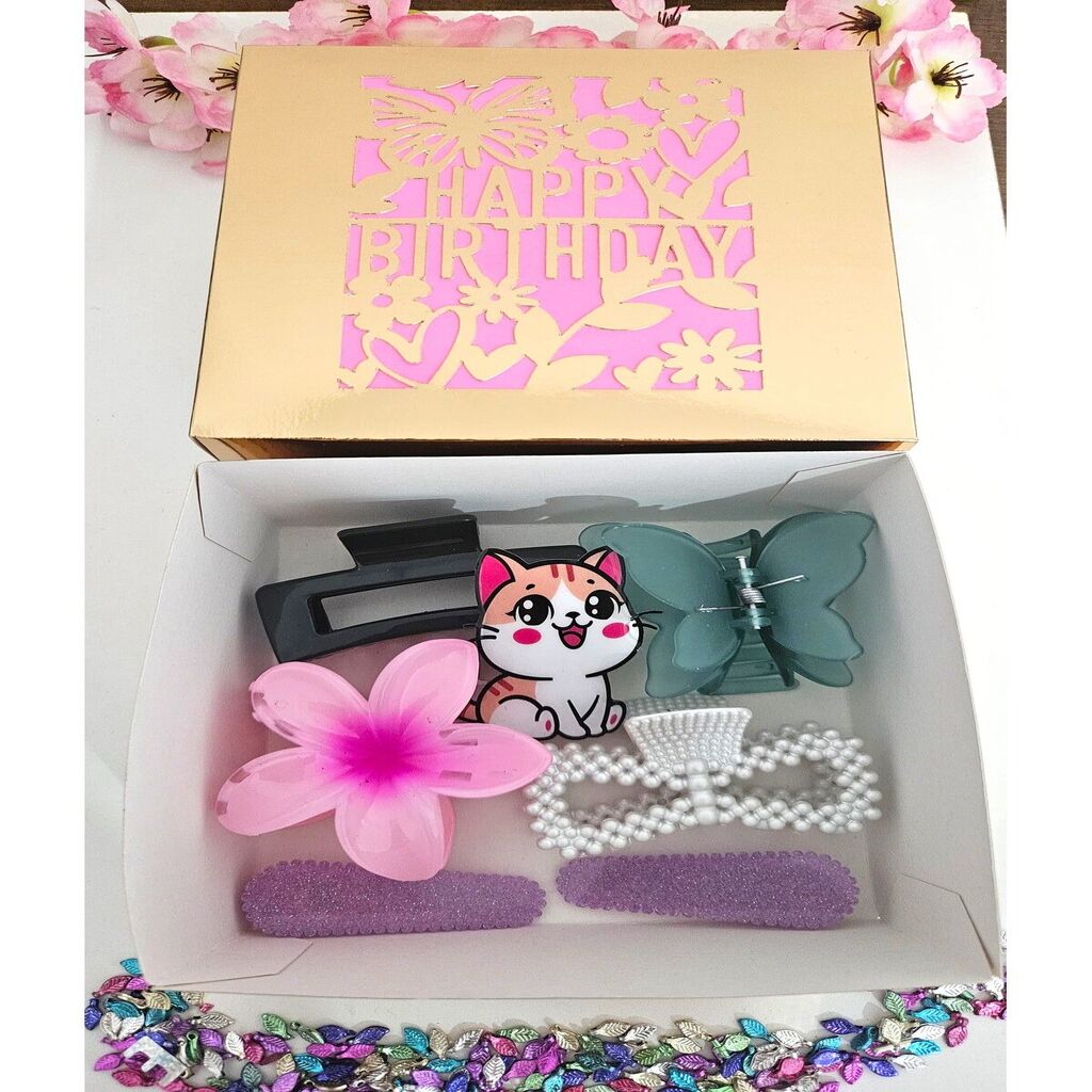-Doğum Gününde sevdiğiniz kişilere orijinal bir hediye olarak bu Doğum Günü Hediye Toka Kutusunu hediye edebilirsiniz.; -Kutunun boyutları 15 cm en x 15 cm boy x 7 cm derinlik şeklindedir.; - İçindeki 7 adet lüks tokanın her biri ayrı bir güzelliğe sahiptir, tokalar KARIŞIK olarak gelecektir, gelecek tüm tokalar dayanıklı ve şık bir tasarıma sahip.; - Karışık desen seçeneği ile her zevke uygun bir görünüm sunar.; - Kadın ve kız kullanıcılar için idealdir; hem günlük kullanım hem de özel günlerde tercih edilebilir.; - Yetişkin yaş grubuna hitap eden zarif tasarımıyla dikkat çeker.; - Türkiye'de üretilmiş olup yerel üretim avantajını yansıtır.; - Poliamid materyali sayesinde uzun süreli kullanım vaat ederken, hafifliğiyle konfor sağlar.;