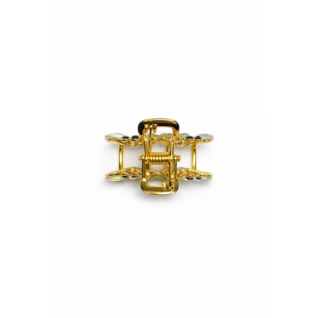 4 cm Gri İnci Görünümlü Kelebek Formlu Gold Kadın Saç Tokası, göz alıcı sedef parlaklığındaki kanat detayları ve gold çerçevesiyle şık bir görünüm sunar. El işçiliği taş detayları, ışığı zarifçe yansıtarak hem gündüz hem gece kombinlerinde kusursuz bir tamamlayıcı olur.