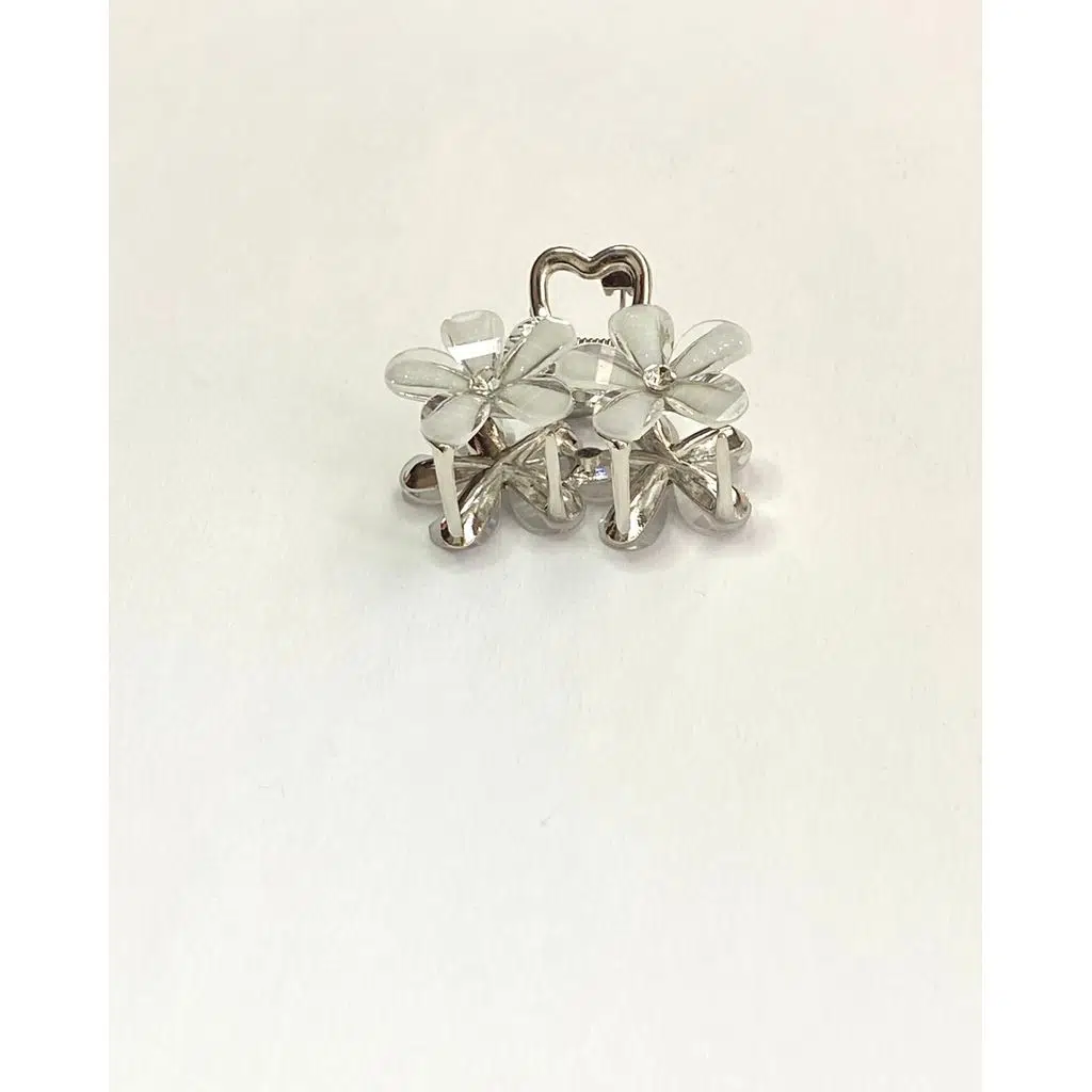 Gri Taşlı Çiçek Metal Mandal Toka 4 cm