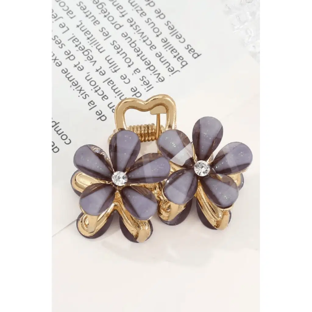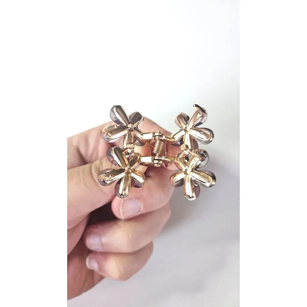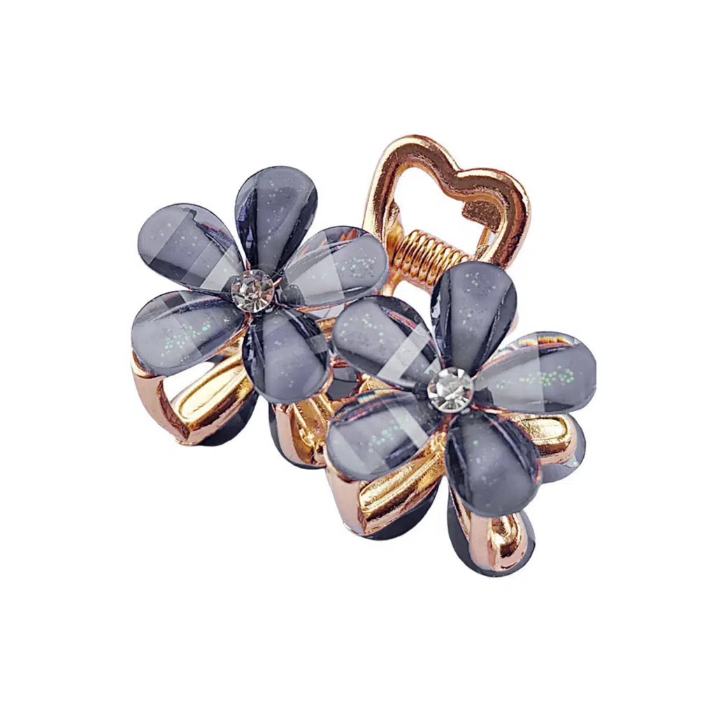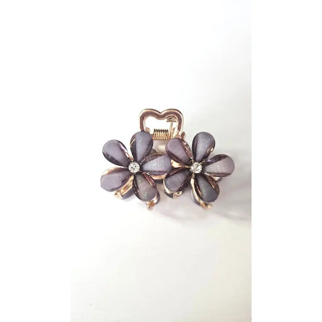 Gri Taşlı Çiçek Metal Mandal Toka 4 cm