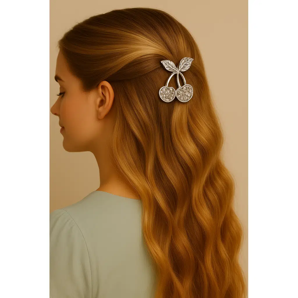7 cm Gümüş Kiraz Formlu Saç Tokası, sade ama dikkat çekici tasarımıyla her stile kolayca uyum sağlar. Parlak gümüş yüzeyi sayesinde ışığı zarifçe yansıtır ve saçlara modern bir parlaklık kazandırır.