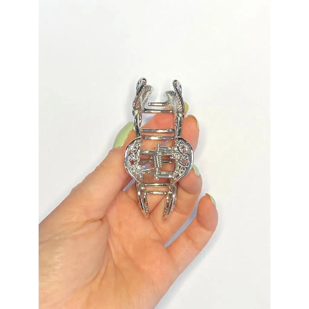 Hem günlük kullanımda hem özel davetlerde tercih edebileceğin bu şık toka, güçlü metal tutuşu ile saçlarını gün boyu sabit tutar. Minimalist görünümünü zarafetle birleştiren bu model, stilini tamamlayan küçük ama etkili bir detaydır.