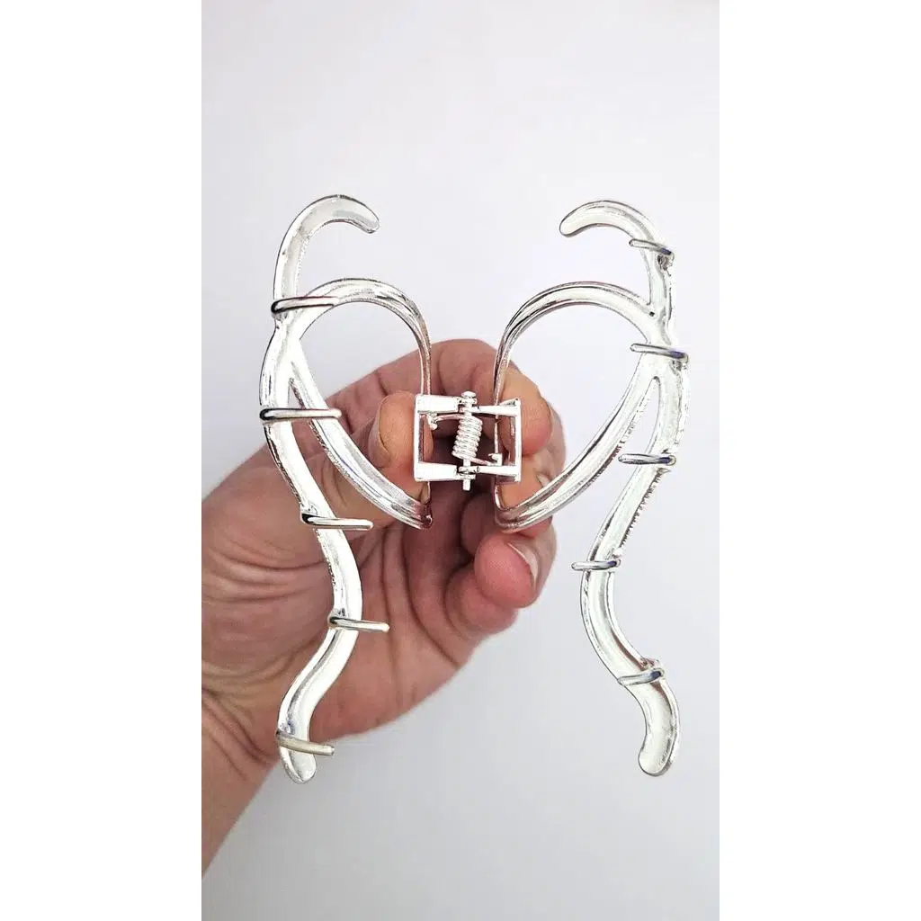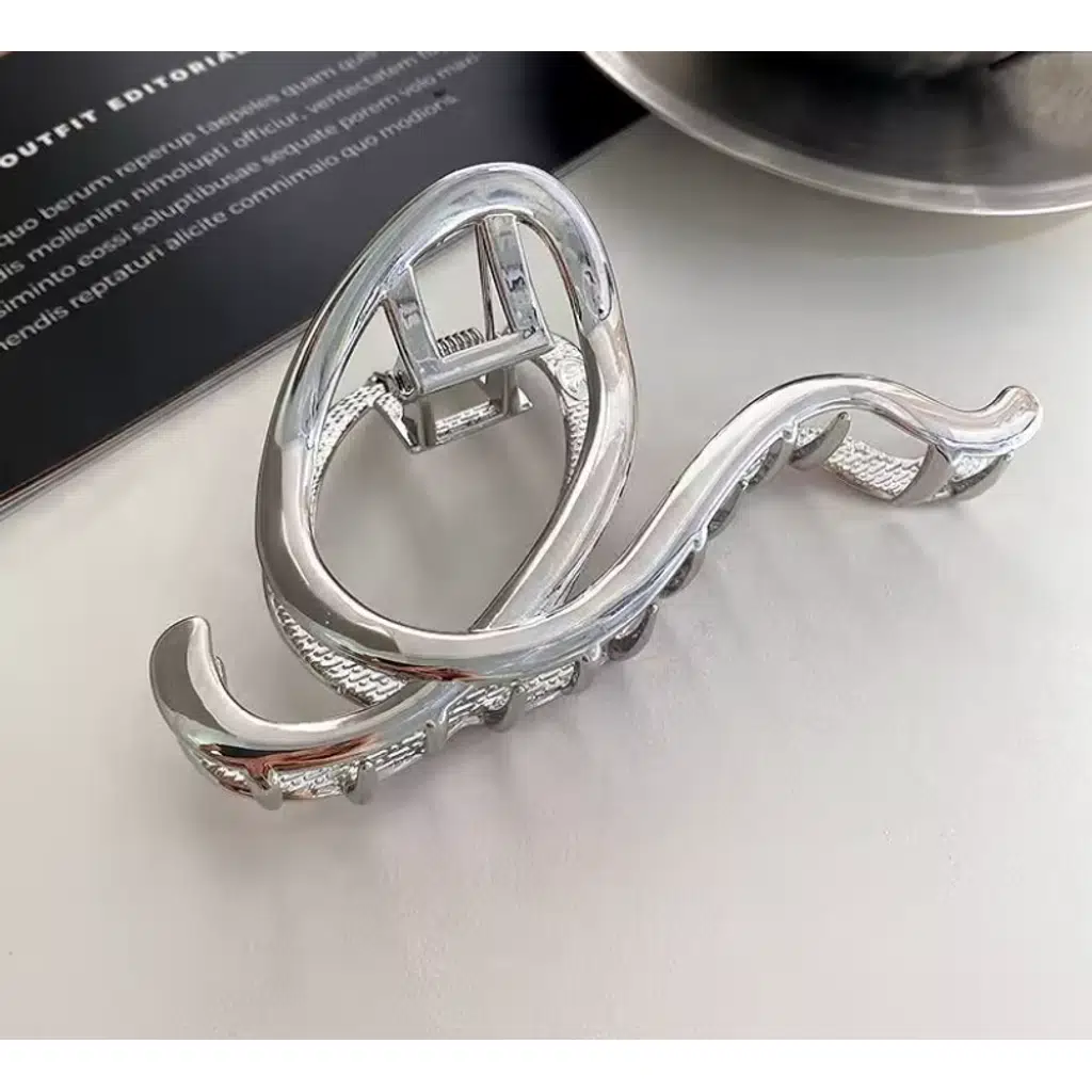 Gümüş Renk Asimetrik Spiral Metal Mandal Saç Tokası 10 cm – Şık ve Dayanıklı
