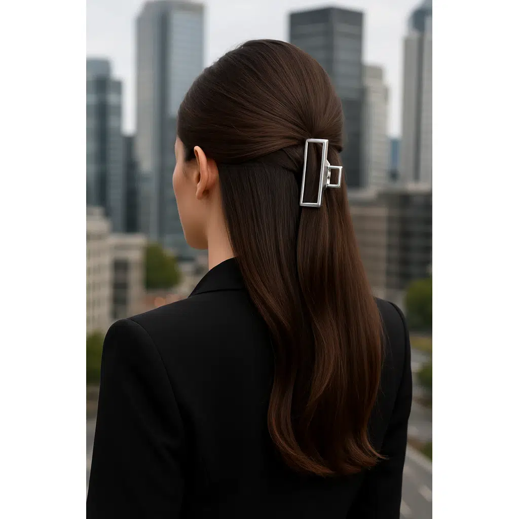 Şıklığı ve işlevselliği bir arada sunan 9 cm dikdörtgen tasarımlı gümüş renk mandal saç tokası, günlük kullanımda ve özel davetlerde saçlarınıza zarif bir dokunuş katıyor. Dayanıklı metal malzemesi sayesinde uzun ömürlü kullanım sağlarken, güçlü tutuş özelliği ile saçınızı gün boyu sabit tutar. Modern ve minimalist tasarımıyla her stile uyum sağlayan bu saç tokası, özellikle çalışan kadınların hem pratik hem de şık tercihi olacak.