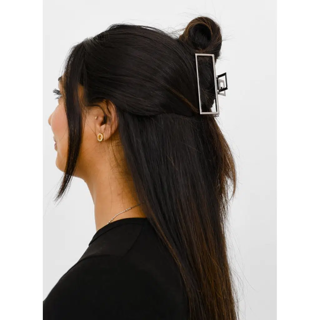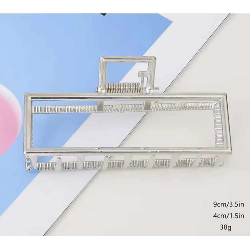 Gümüş Renk Dikdörtgen Metal Mandal Saç Tokası 9 cm