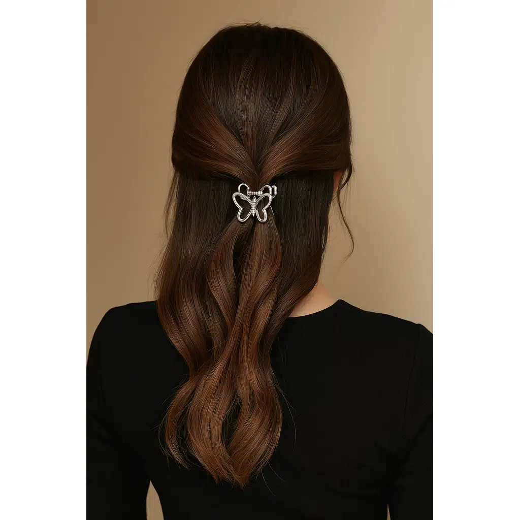 Gümüş Renk Kelebek Mandal Toka 4 cm Küçük Boy - Şık ve Dayanıklı