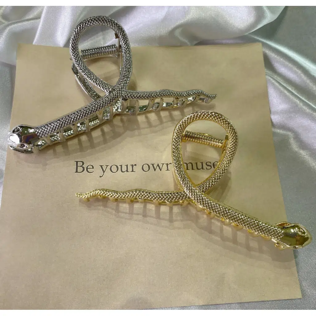 Gümüş Renk Metal Yılan Model 11 cm Lüks Mandal Saç Tokası