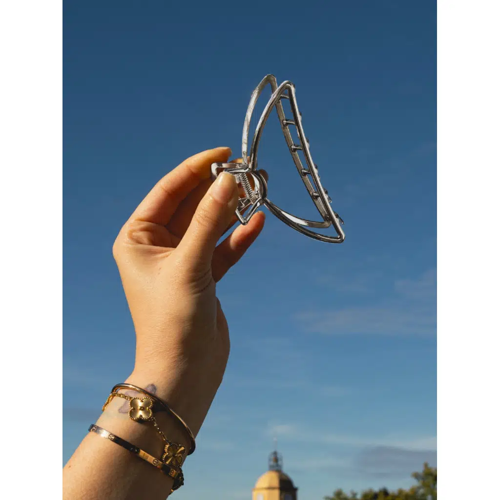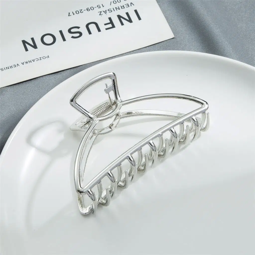 Gümüş Renk Oval Metal Mandal Saç Tokası 10 cm – Şık ve Dayanıklı