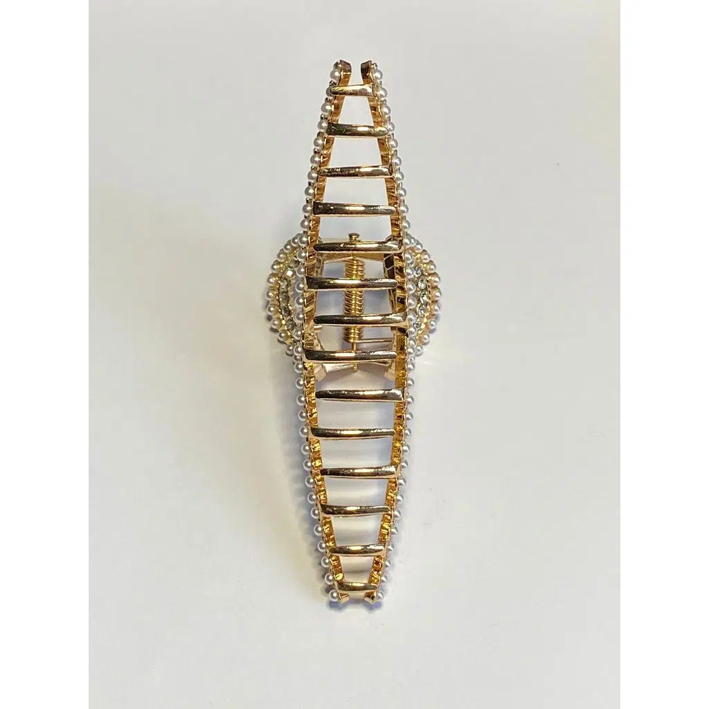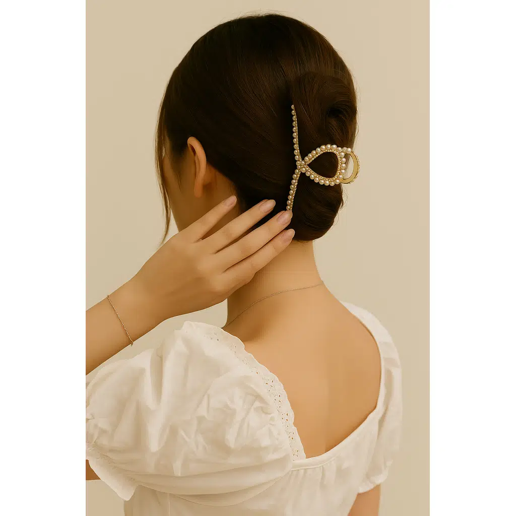 İnci ve Taş Detaylı Kurdele Formlu Metal Mandal Saç Tokası , şık tasarımı ve parlak detaylarıyla her stile zarif bir dokunuş katar. İnci dizilimi ve taş süslemeleriyle ışığı muhteşem şekilde yansıtır.