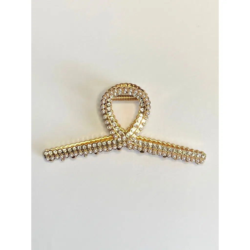 Model: İnci ve taş detaylı kurdele formunda mandal toka