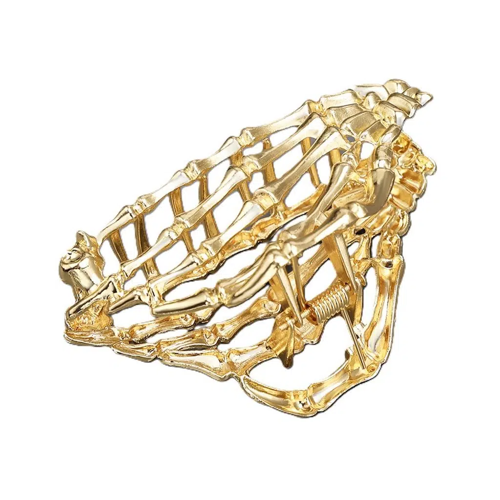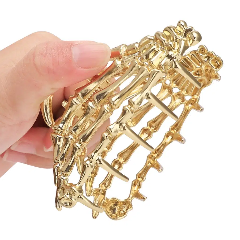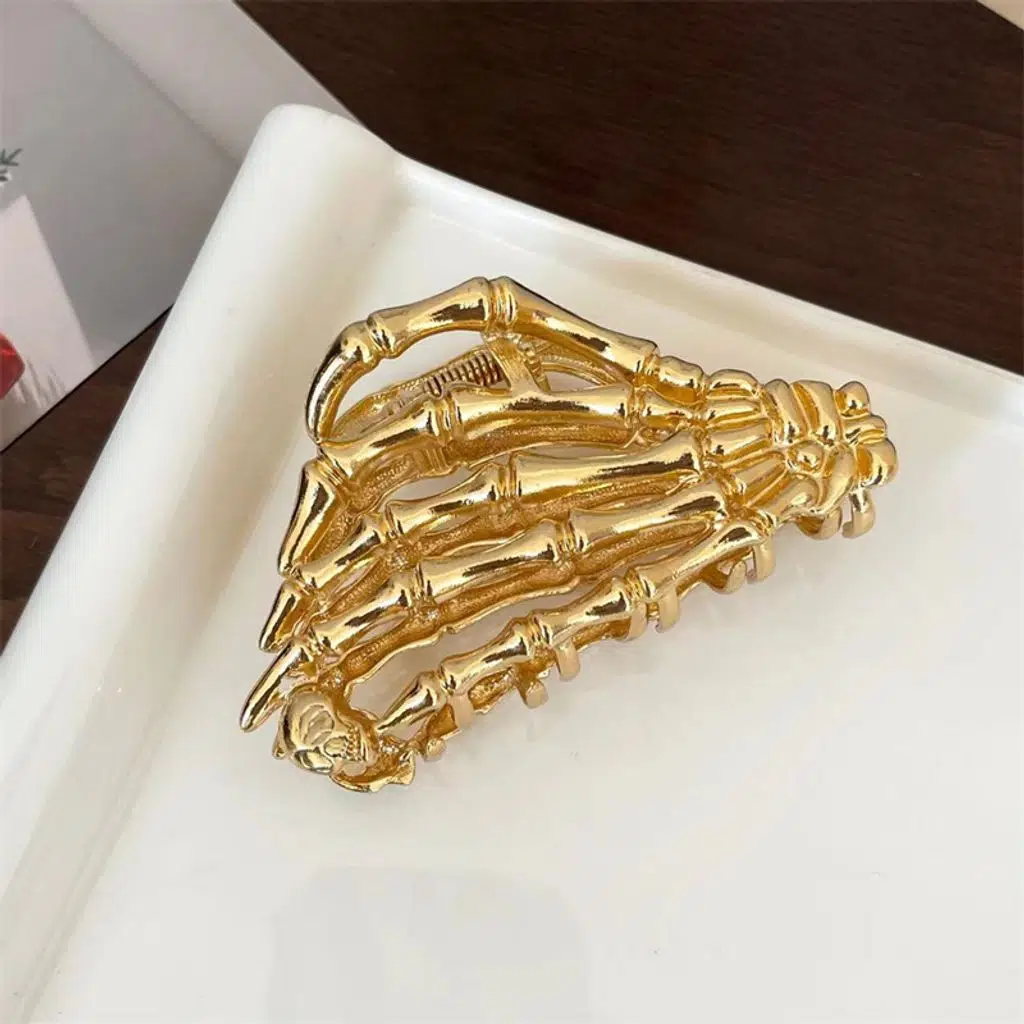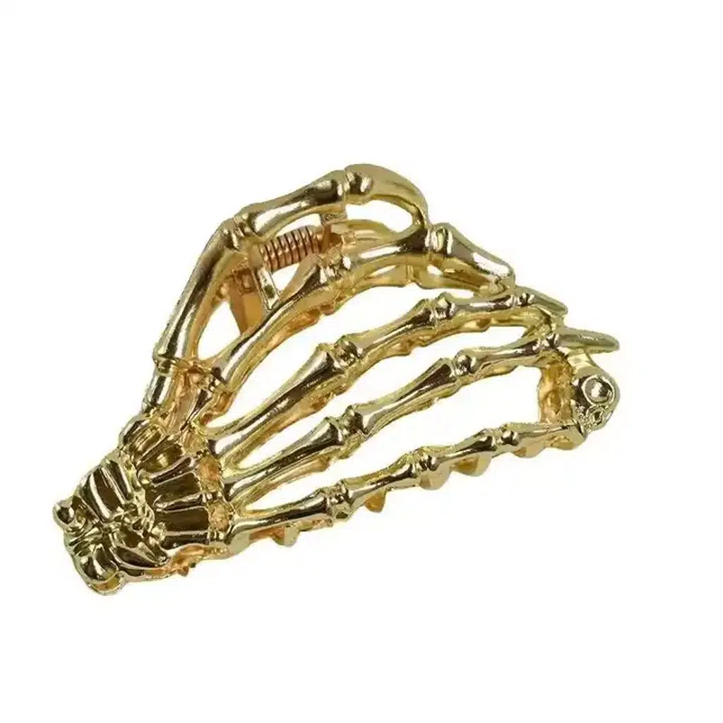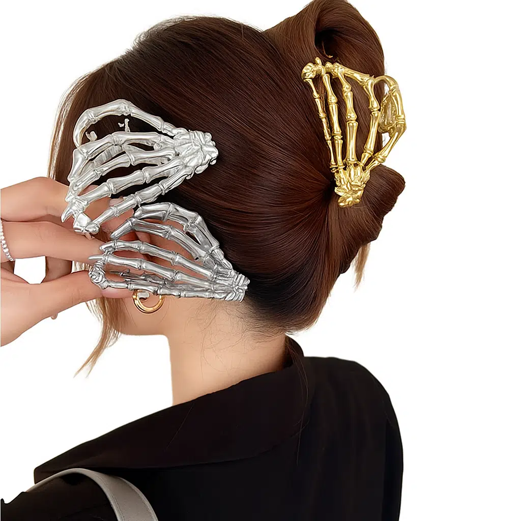İskelet El Tasarımlı Metal Mandal Saç Tokası, farklı tarzları sevenler için özel olarak tasarlandı. Metalik yapısı ve kemik el formuyla klasik tokalardan ayrılarak saçlara sıra dışı bir görünüm kazandırır.