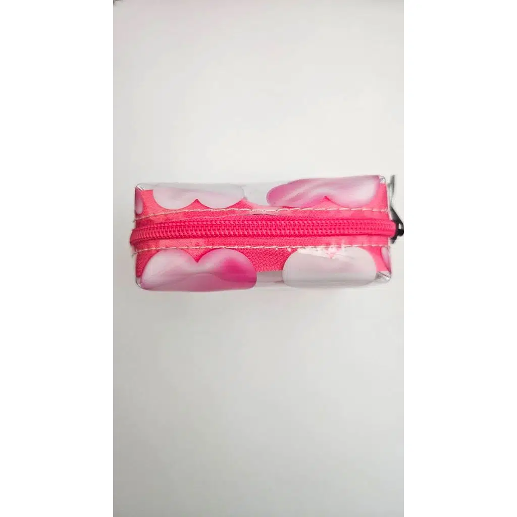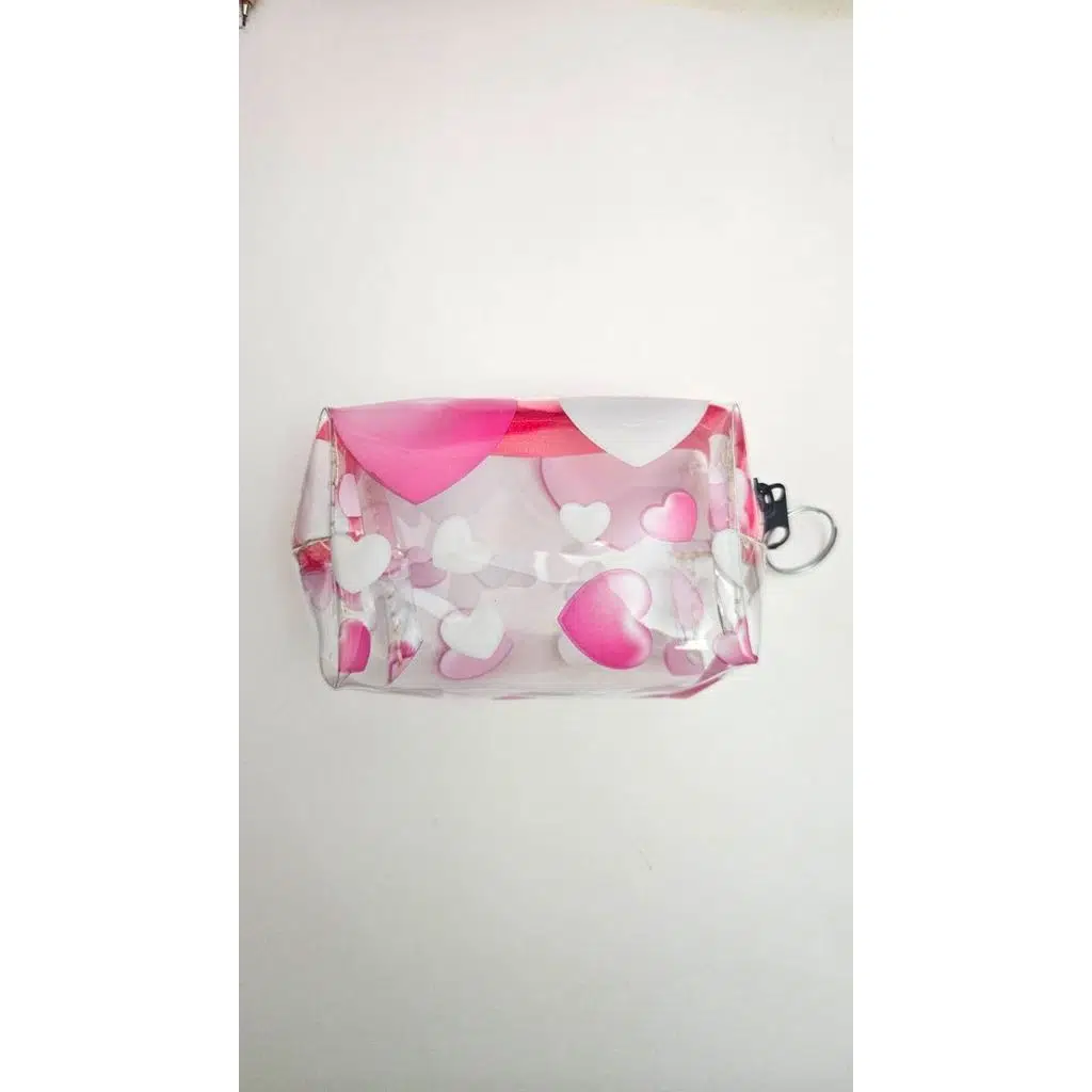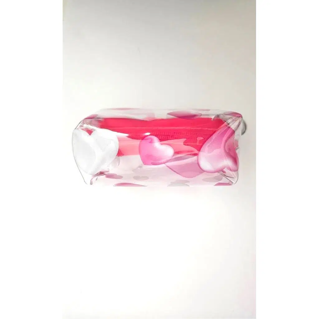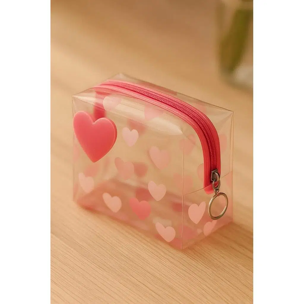 Kalp Figürlü Şeffaf Fermuarlı Mini El ve Makyaj Çantası | 10x6 cm