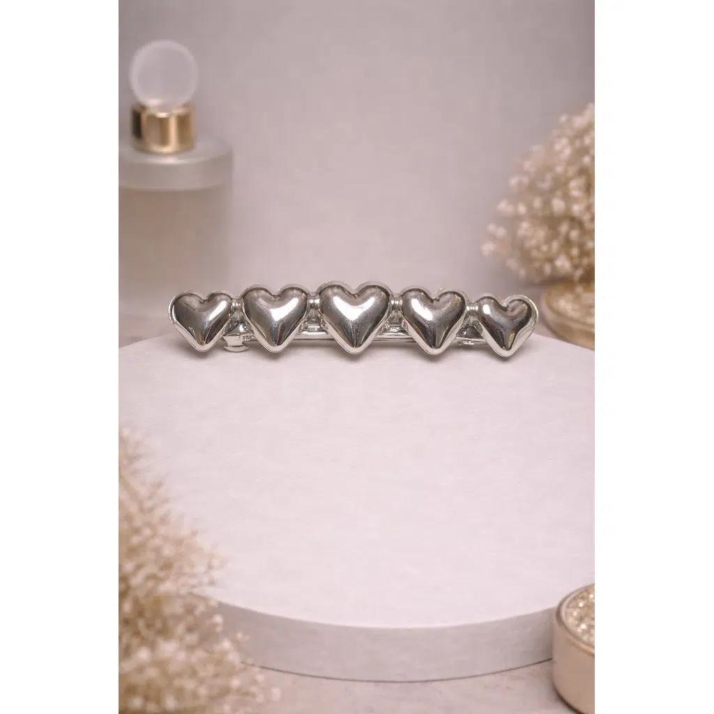 8 cm Kalp Model Gümüş Saç Tokası, kalp formundaki modern tasarımıyla dikkat çeker. Parlak gümüş rengiyle her saç rengine uyum sağlayarak feminen bir duruş kazandırır. Hem günlük kullanımlar hem de özel davetlerde şık bir tamamlayıcı olarak öne çıkar.