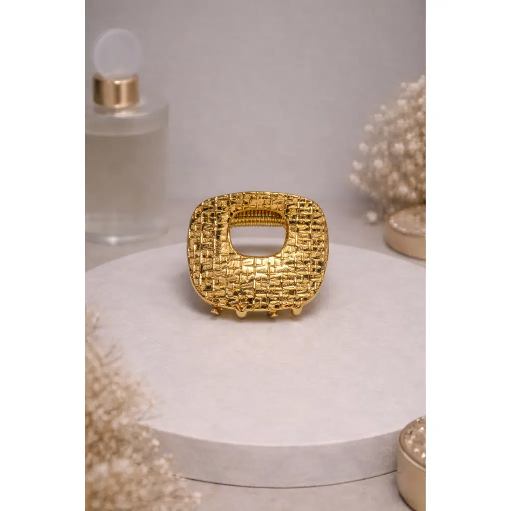 3 cm Kare Dokulu Gold Saç Tokası, modern dokulu yüzeyi ve parlak altın rengiyle saçlarınıza zarif bir dokunuş katıyor. Mini boyutuyla pratik kullanım sunan bu toka, kısa saçlar, yarım topuzlar ve zarif detay isteyen stiller için mükemmel bir tamamlayıcıdır.