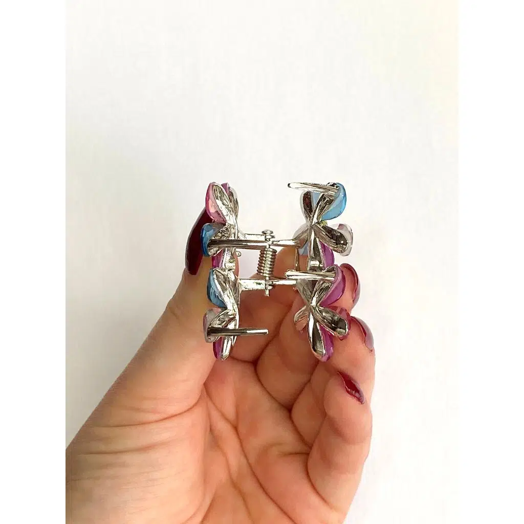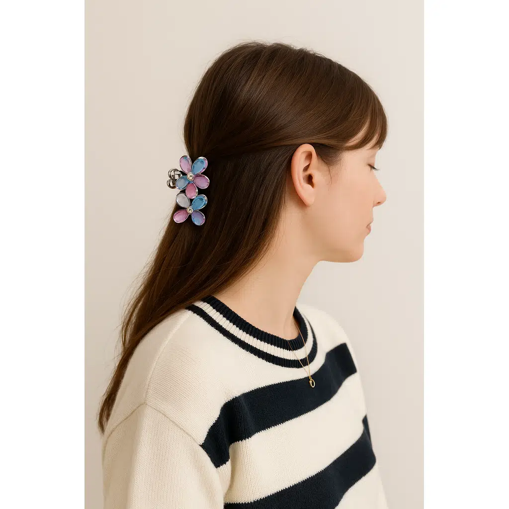 Karışık Renkli Taşlı Çiçek Metal Mandal Toka 4 cm