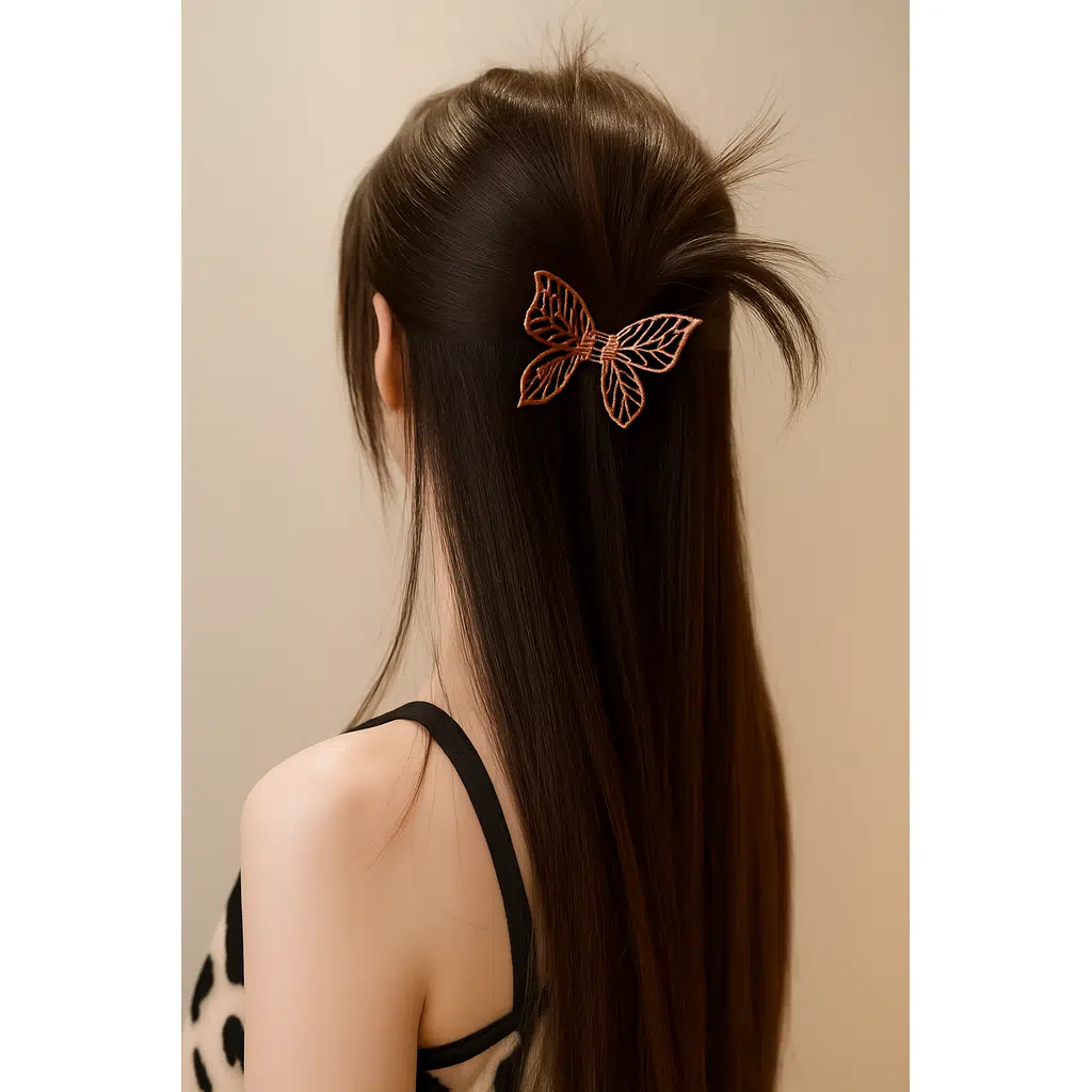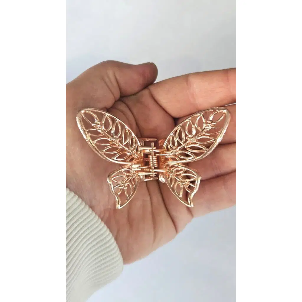 Kelebek Model Bakır Renk 7 cm Orta Boy Metal Saç Tokası