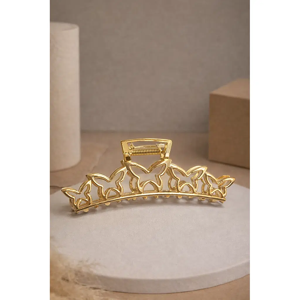 Kelebek Model Gold Saç Tokası, altın tonlu şık metal tasarımıyla modern ve zarif bir görünüm sunar. Kelebek figürleriyle tasarlanan bu toka, romantik detaylarıyla dikkat çeker ve her saç tipine mükemmel uyum sağlar.