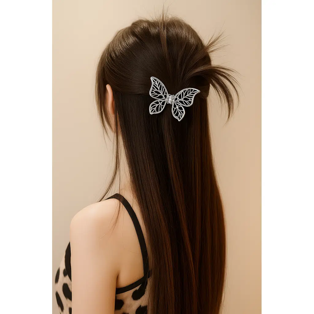 Zarif kelebek formuyla tasarlanmış bu 7 cm orta boy metal saç tokası, günlük kullanımdan özel davetlere kadar her anınıza uyum sağlayan şık bir aksesuardır. Hafif yapısı sayesinde saçta ağırlık yapmaz ve güçlü metal klipsiyle tüm gün sağlam tutuş sağlar.