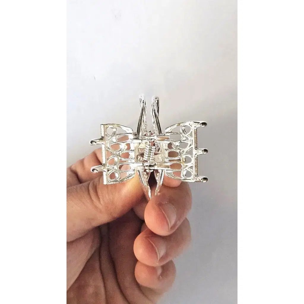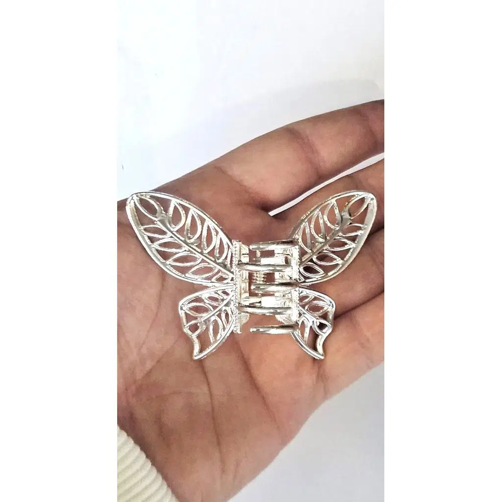 Kelebek Model Gümüş Renk 7 cm Orta Boy Metal Saç Tokası