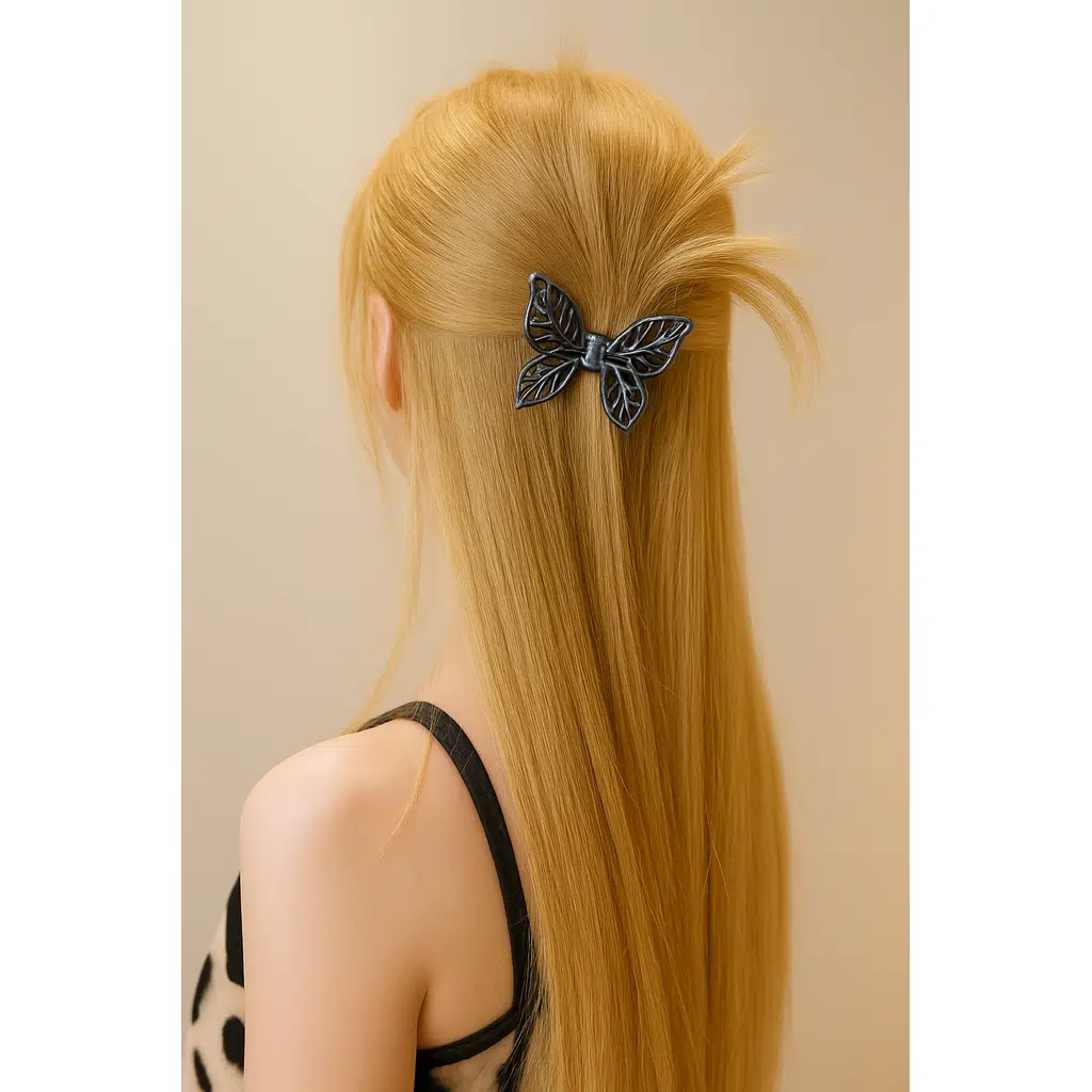 Zarif kelebek formuyla tasarlanmış bu 7 cm orta boy metal saç tokası, günlük kullanımdan özel davetlere kadar her anınıza uyum sağlayan şık bir aksesuardır. Hafif yapısı sayesinde saçta ağırlık yapmaz ve güçlü metal klipsiyle tüm gün sağlam tutuş sağlar.