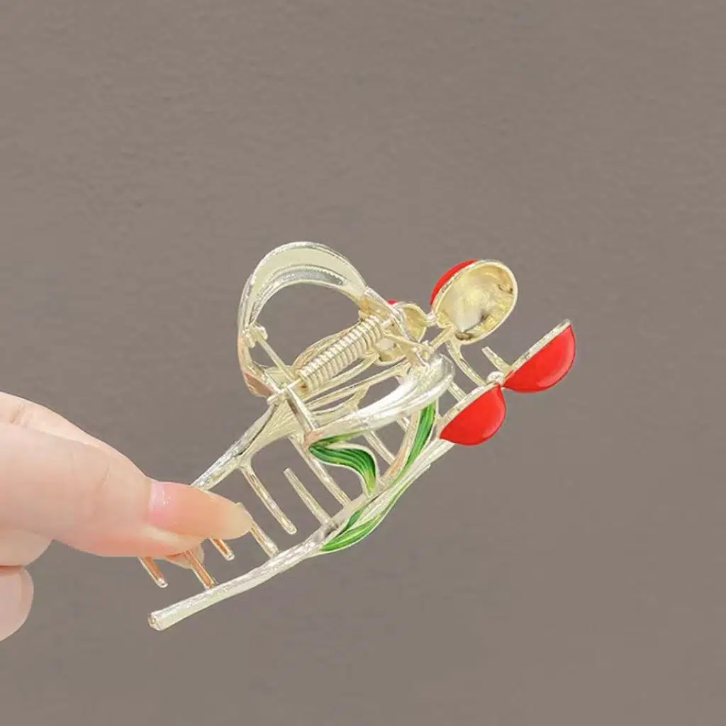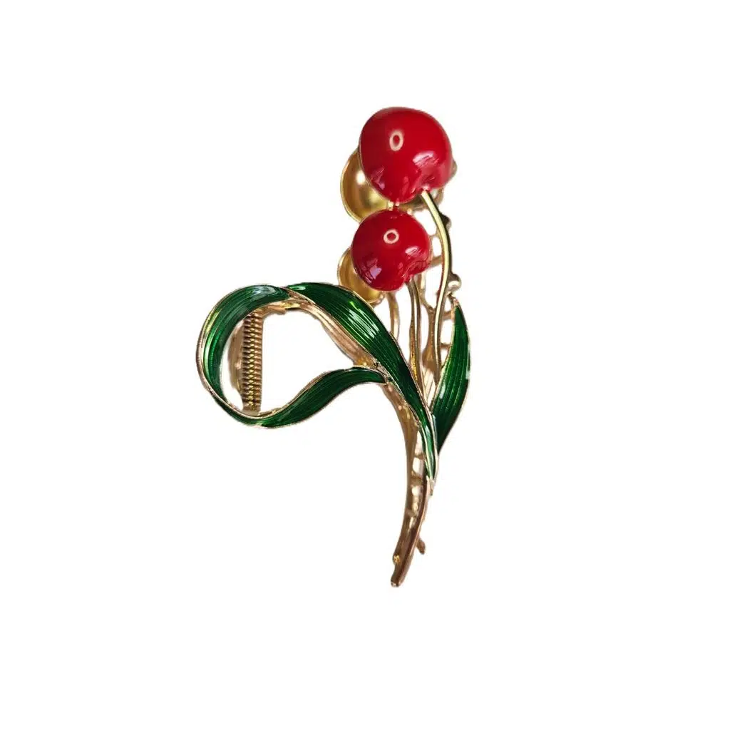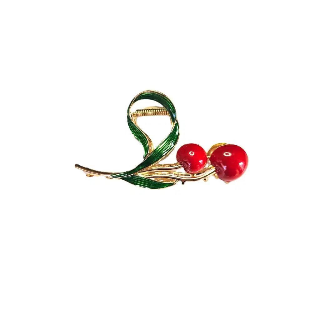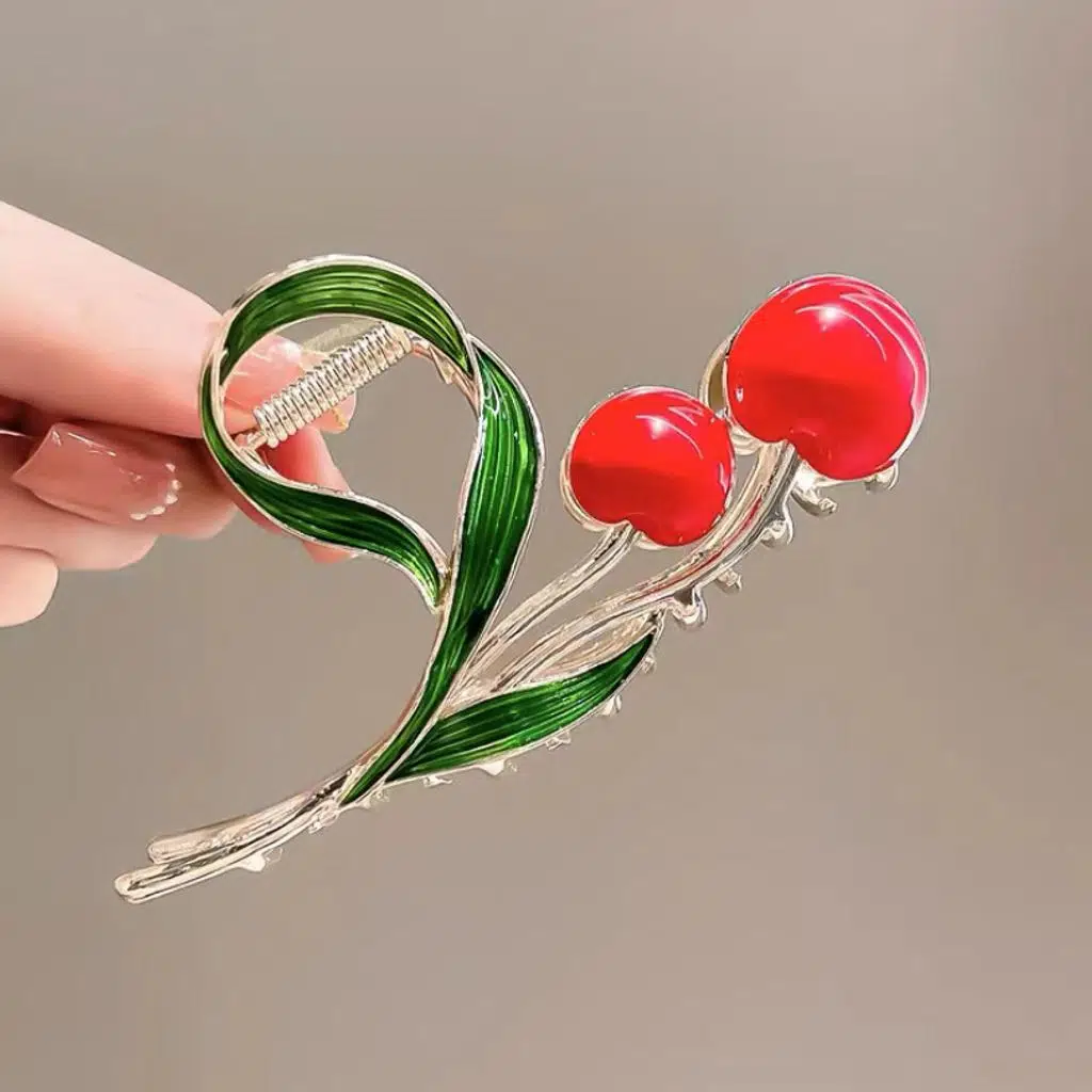 Kiraz Desenli Metal Mandal Saç Tokası 11 cm – Şık ve Dayanıklı