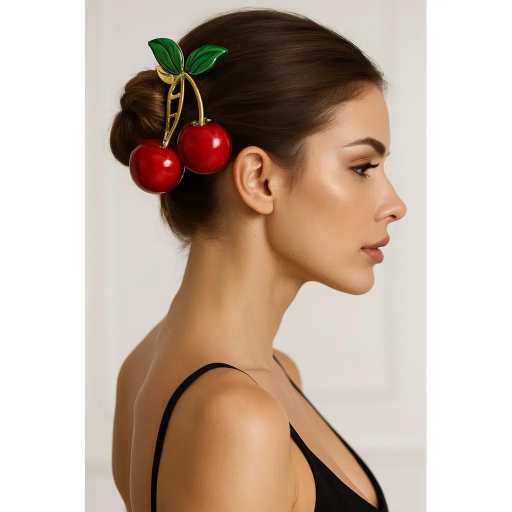 Özenle hazırlanmış parlak kiraz ve yaprak detaylarıyla saçlarınıza enerjik ve eğlenceli bir görünüm kazandırır.