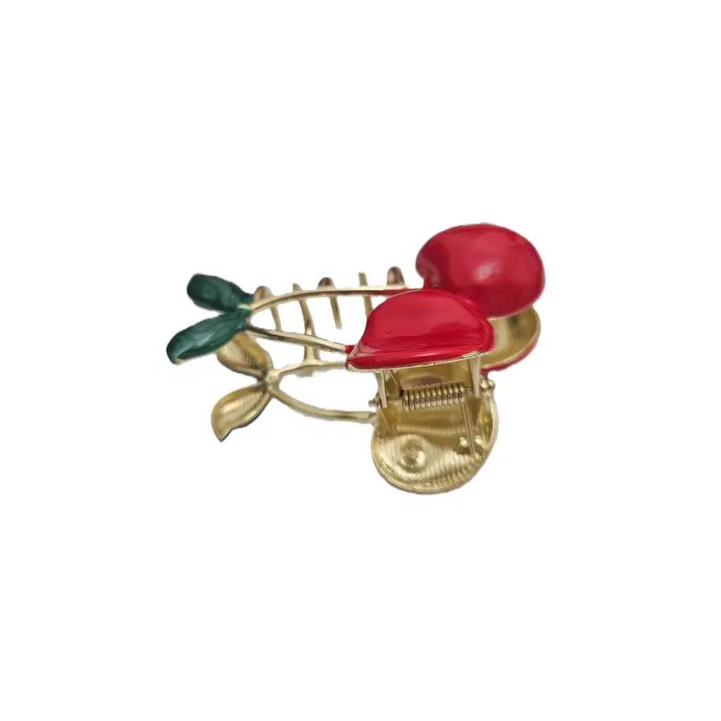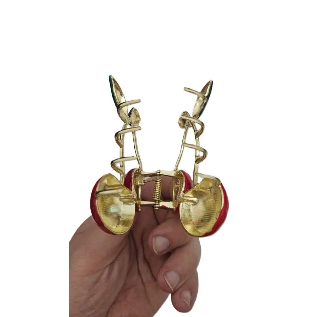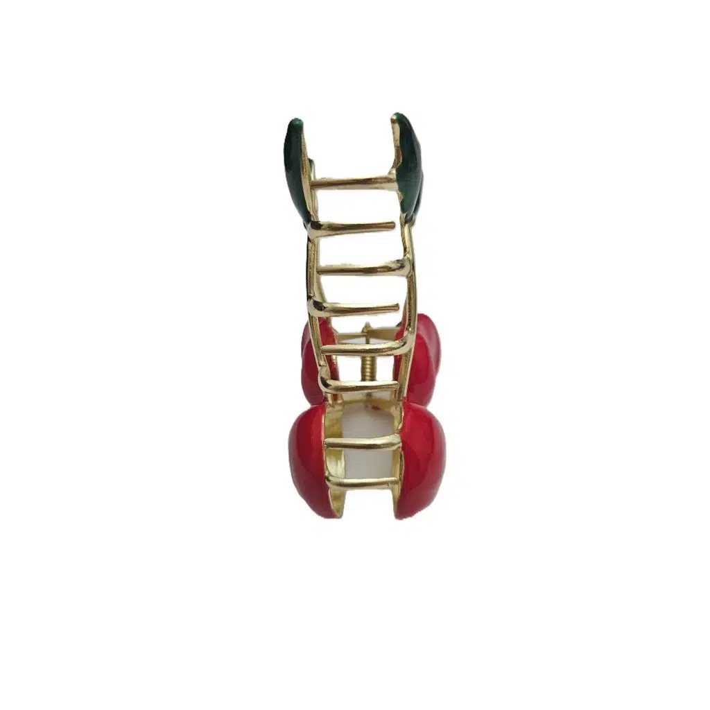 Saçlarınıza canlılık ve zarafet katacak kiraz figürlü büyük boy metal mandal saç tokası, modern tasarımı ve güçlü tutuş özelliği ile hem günlük kullanımda hem de özel günlerde şıklığınızı tamamlar. Parlak kırmızı kiraz detayları ve yeşil yaprak tasarımıyla dikkat çeken bu toka, estetik görünümü sayesinde saç stillerinize farklı bir hava katar.