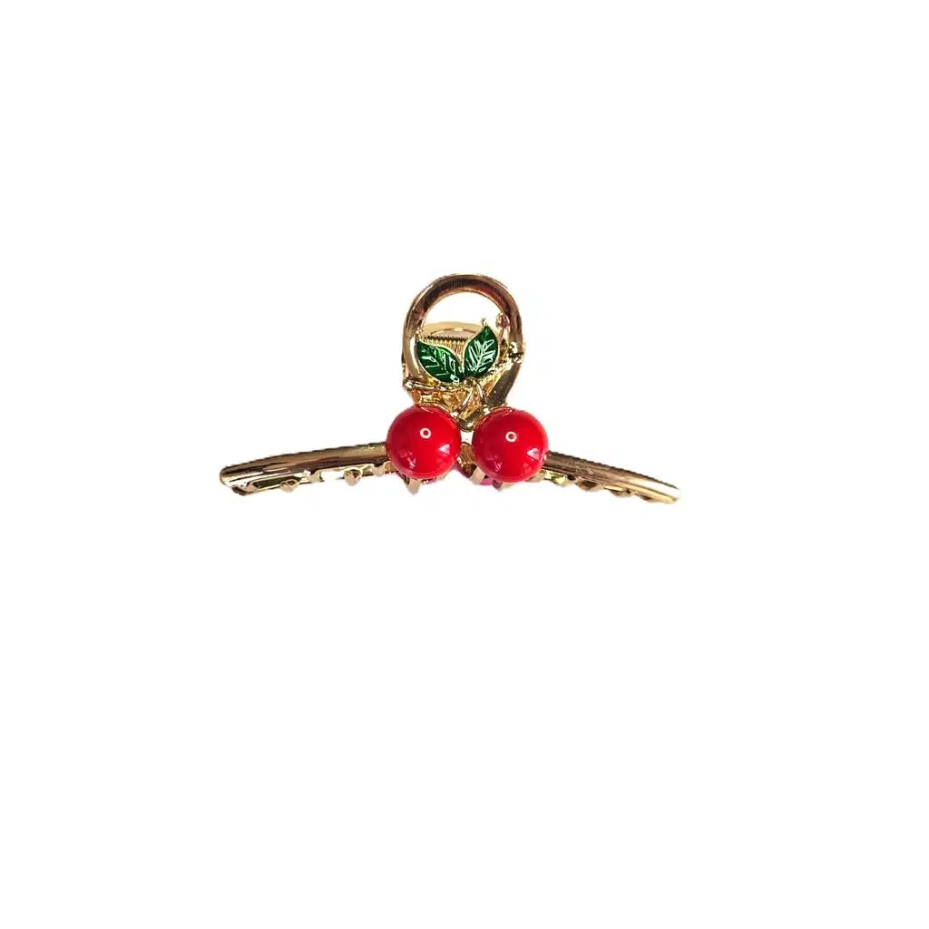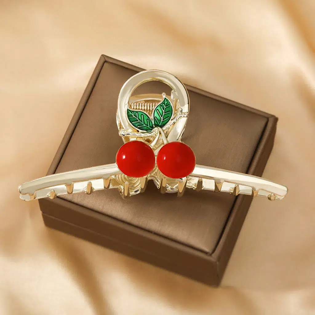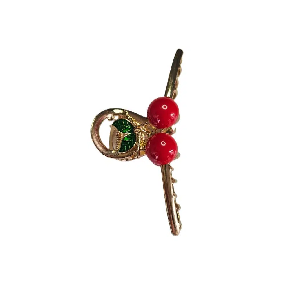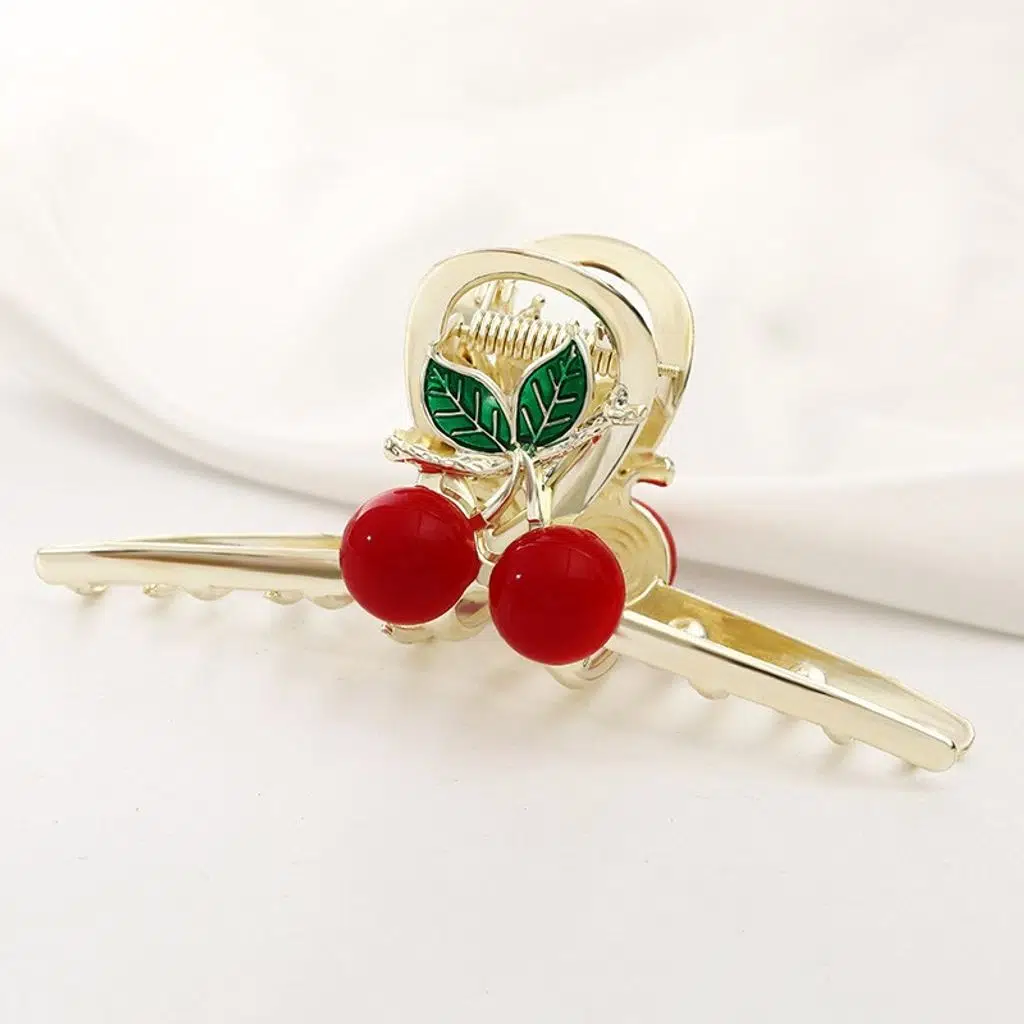 Kirazlı Metal Mandal Saç Tokası 11 cm – Şık ve Dayanıklı