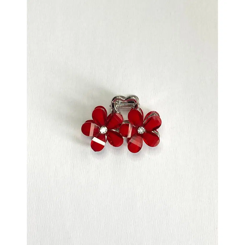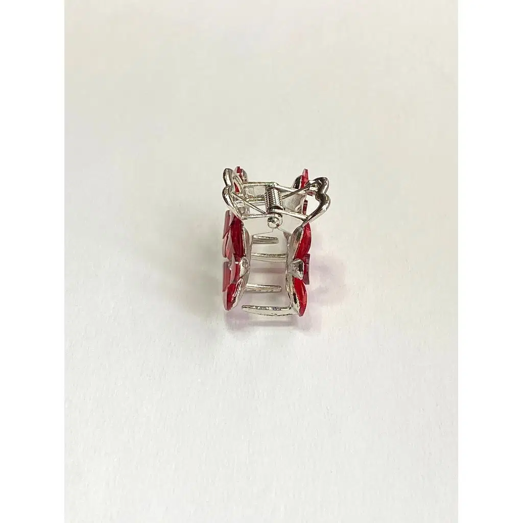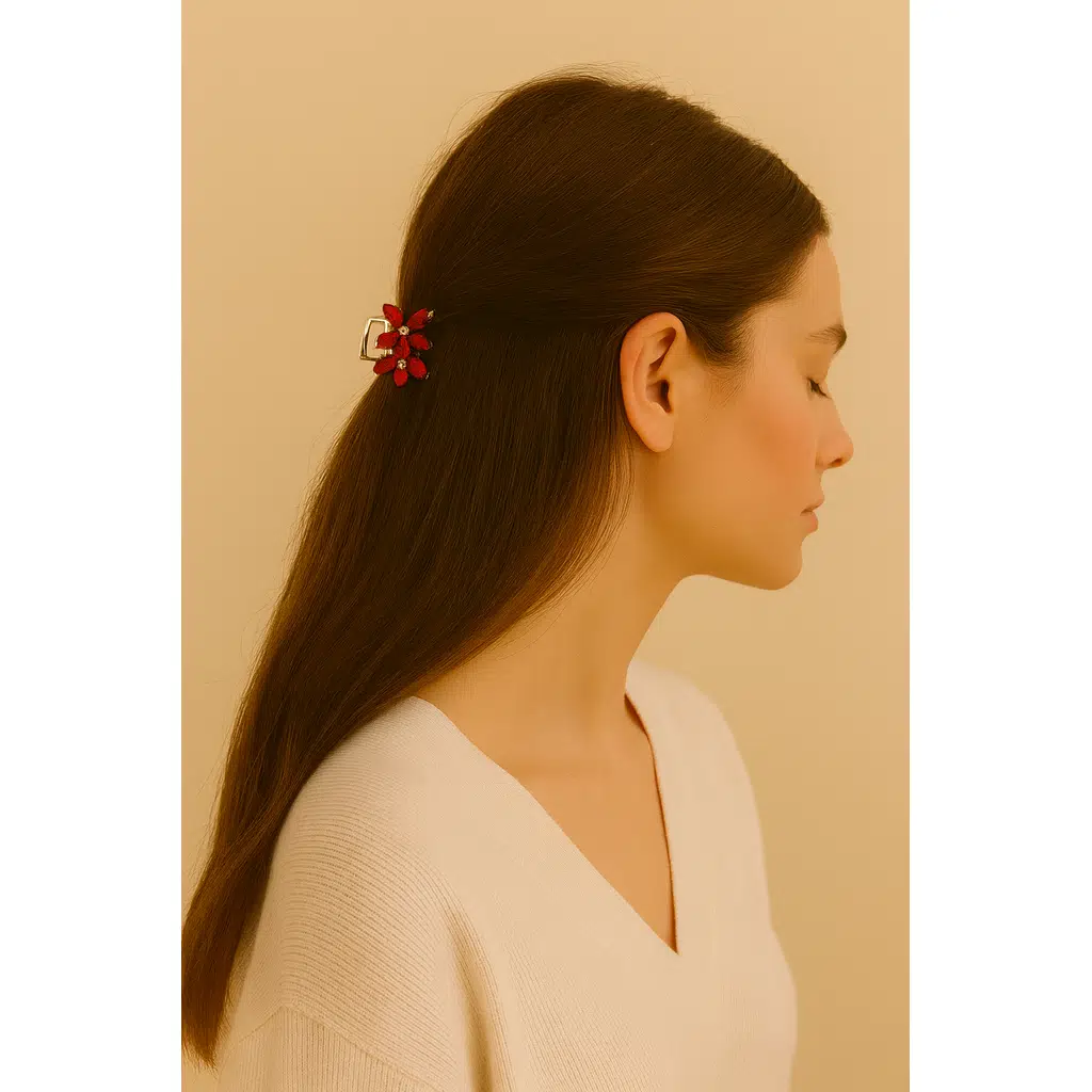 Kırmızı Taşlı Çiçek Metal Mandal Toka 4 cm