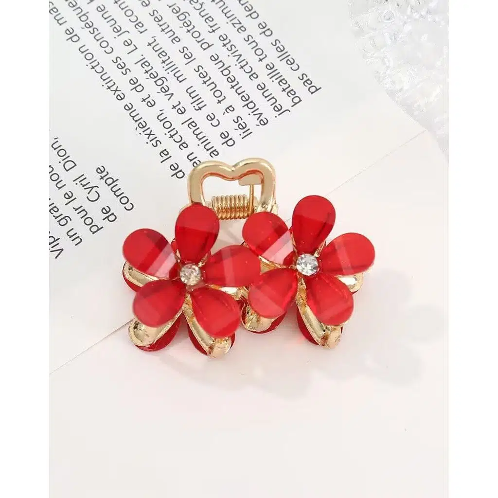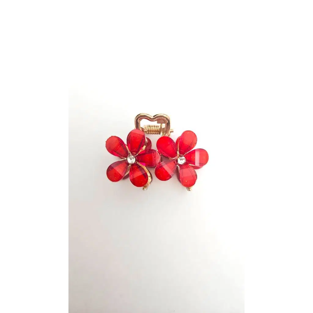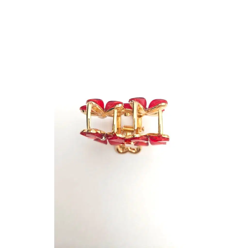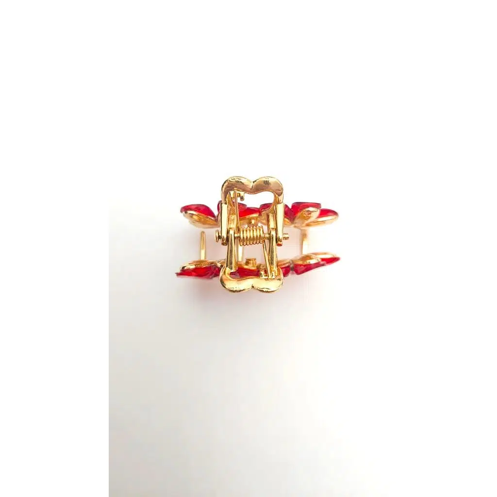 Kırmızı Taşlı Çiçek Metal Mandal Toka 4 cm