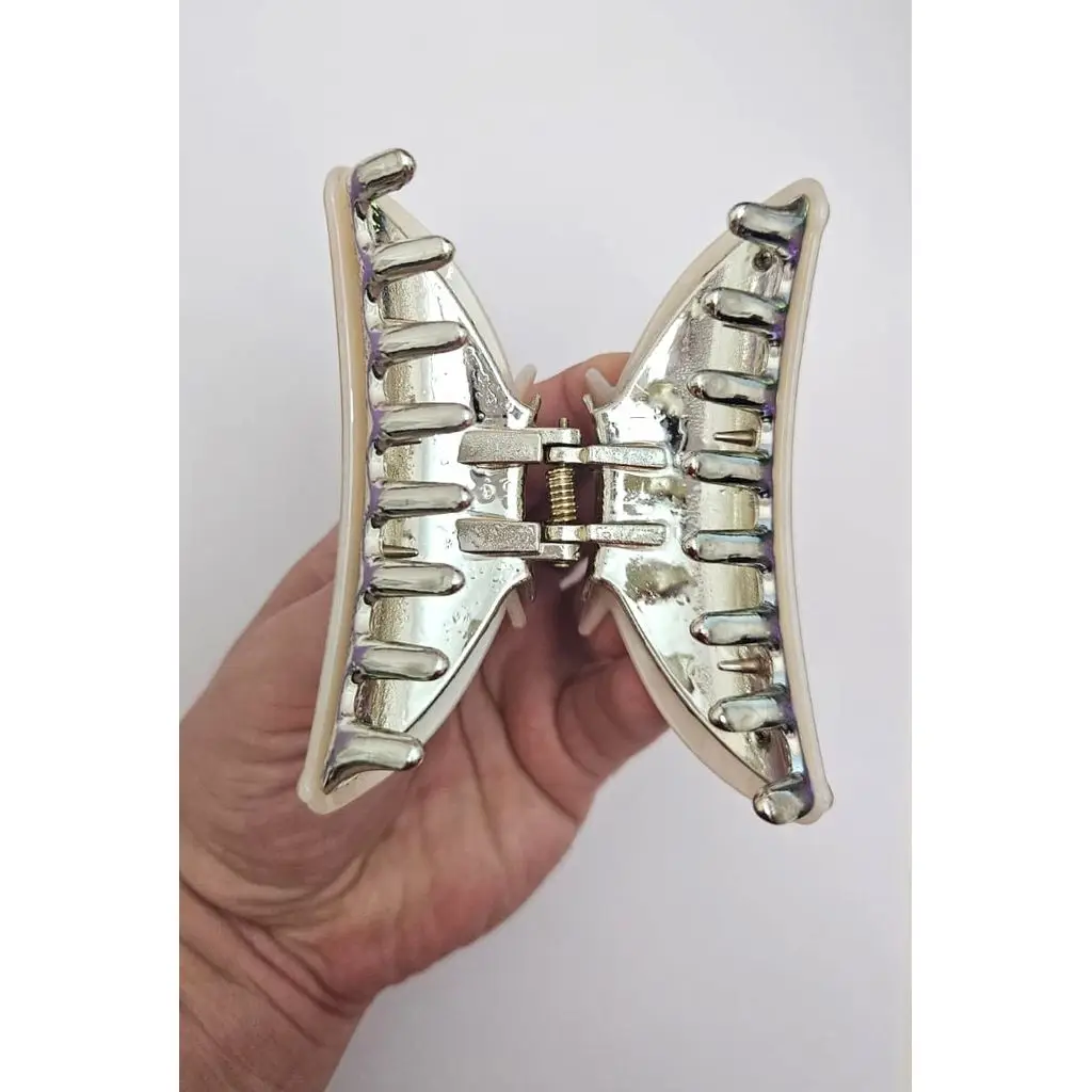 Kore Stili Lüks Kemik Işıltılı Bej Renk Mandal Toka 9 cm - Şık ve Dayanıklı