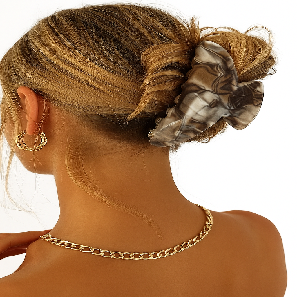 Saçlarınıza zarif bir dokunuş katmak için tasarlanan Kore Stili Lüks Kemik Kahverengi Mandal Toka, hem şıklığı hem de sağlamlığı bir arada sunar. 9 cm boyutuyla günlük kullanımdan özel davetlere kadar her ortamda saçınızı rahatça toplamanıza yardımcı olur.
