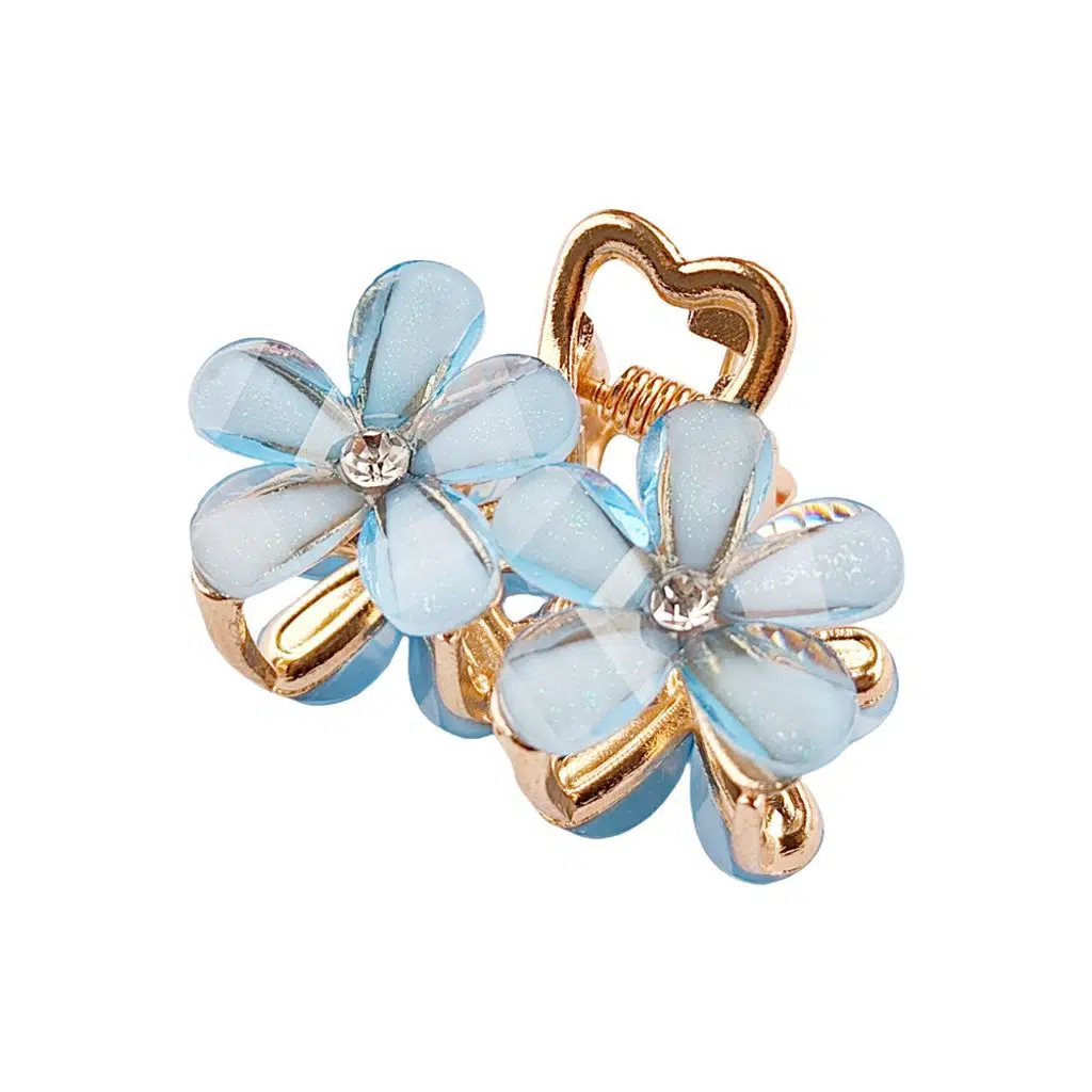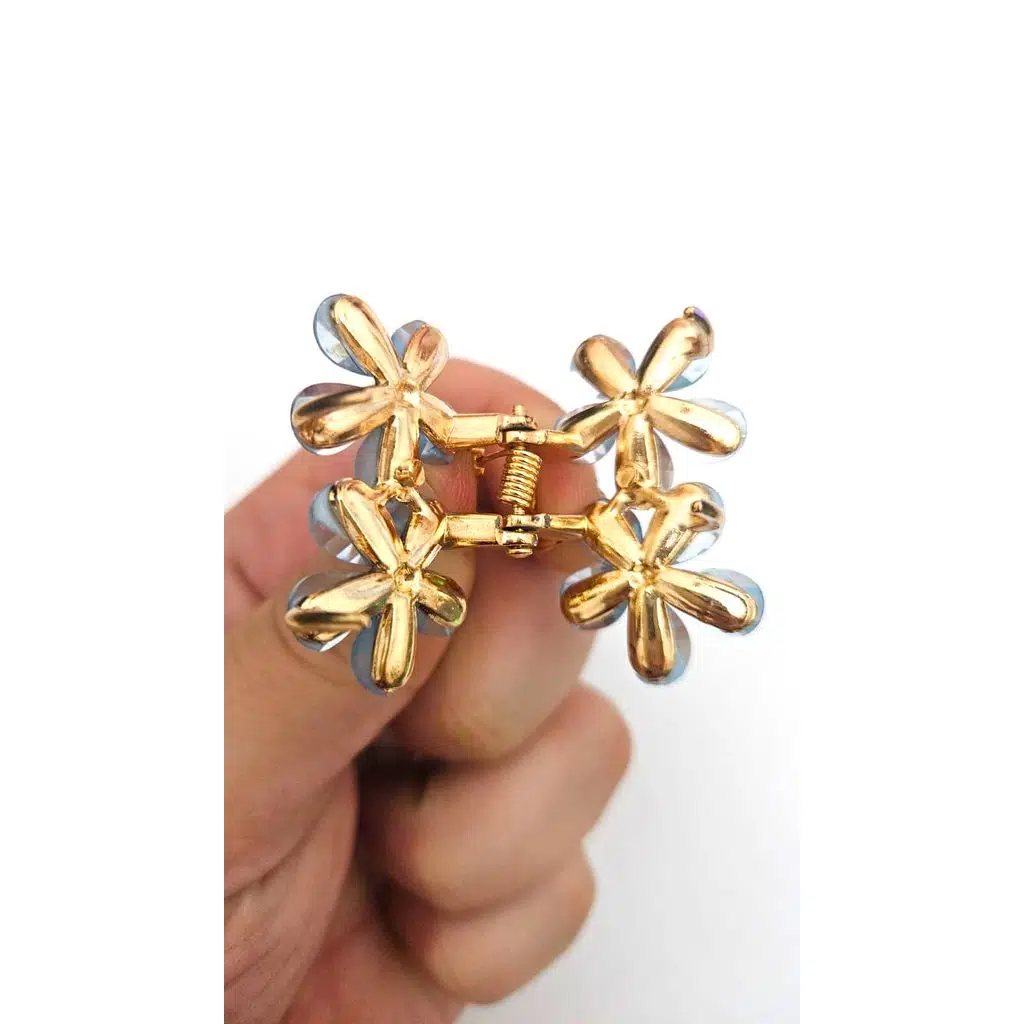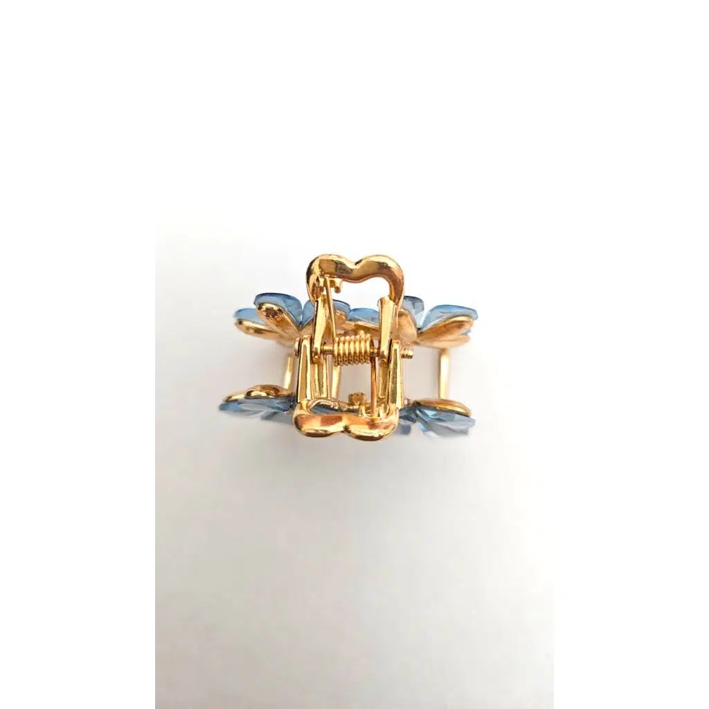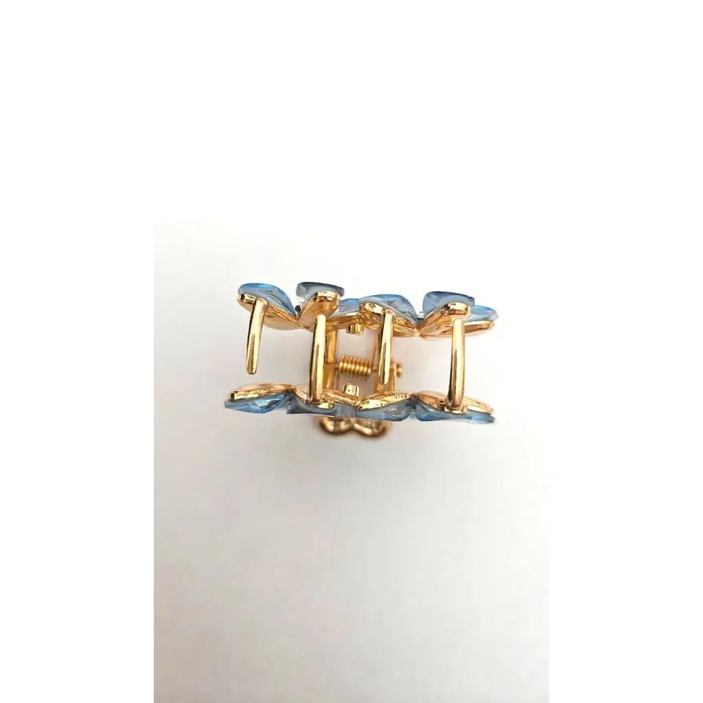 Mavi Taşlı Çiçek Metal Mandal Toka 4 cm