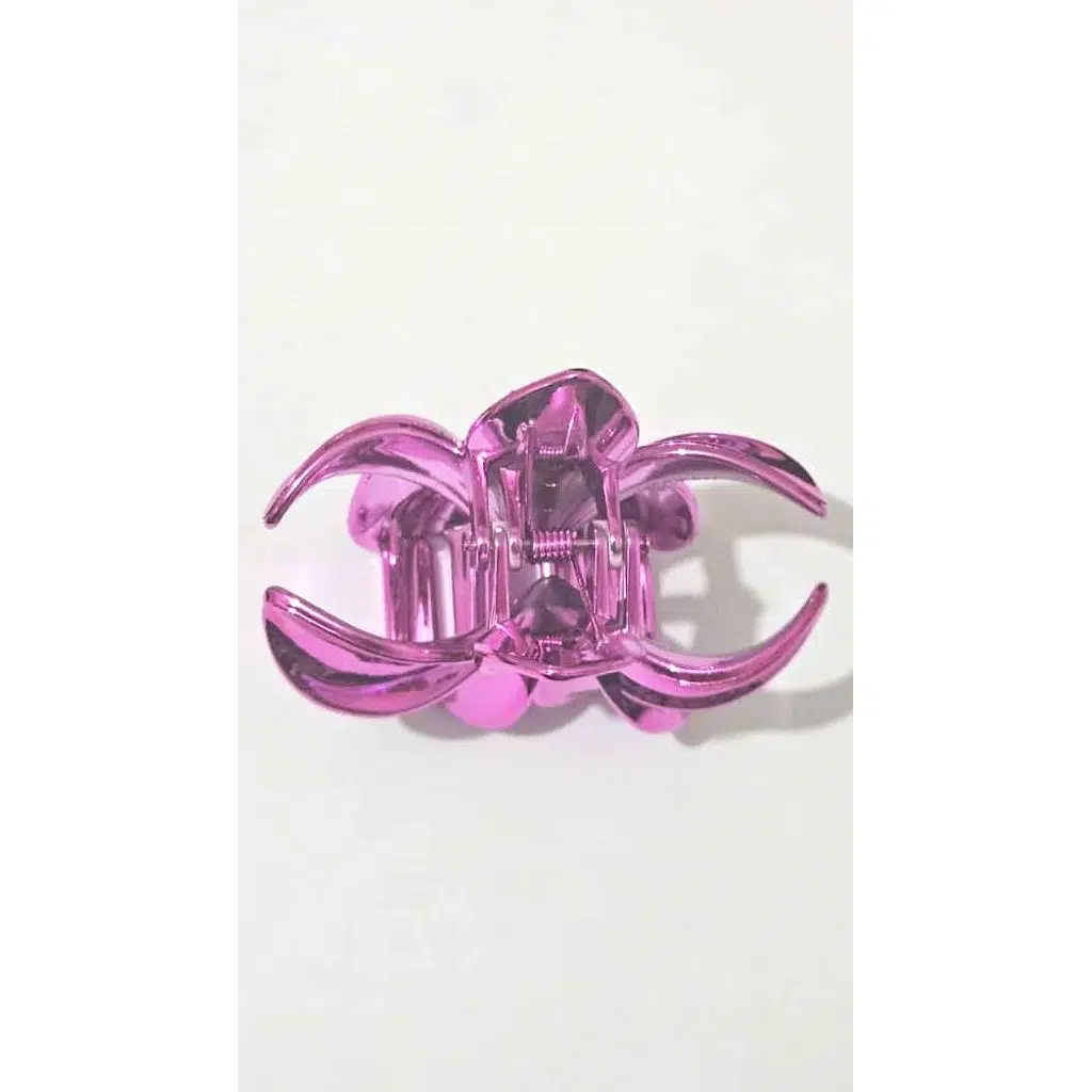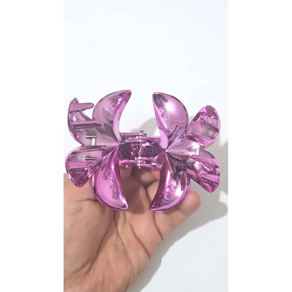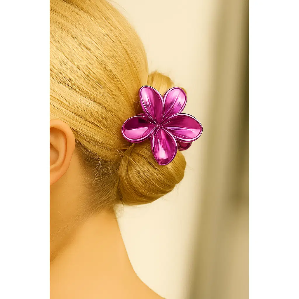Metalik Fuşya Renk Lotus Mandal Saç Tokası 8 cm – Şık ve Dayanıklı