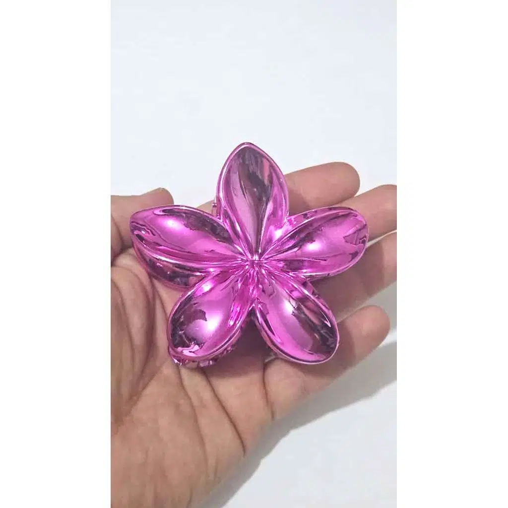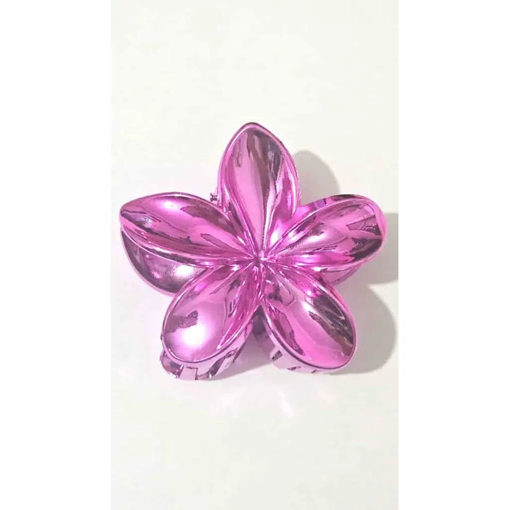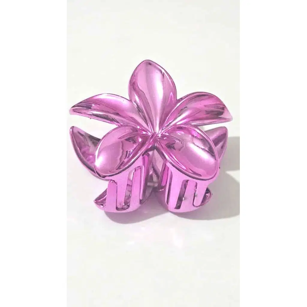 Metalik Fuşya Renk Lotus Mandal Saç Tokası 8 cm – Şık ve Dayanıklı