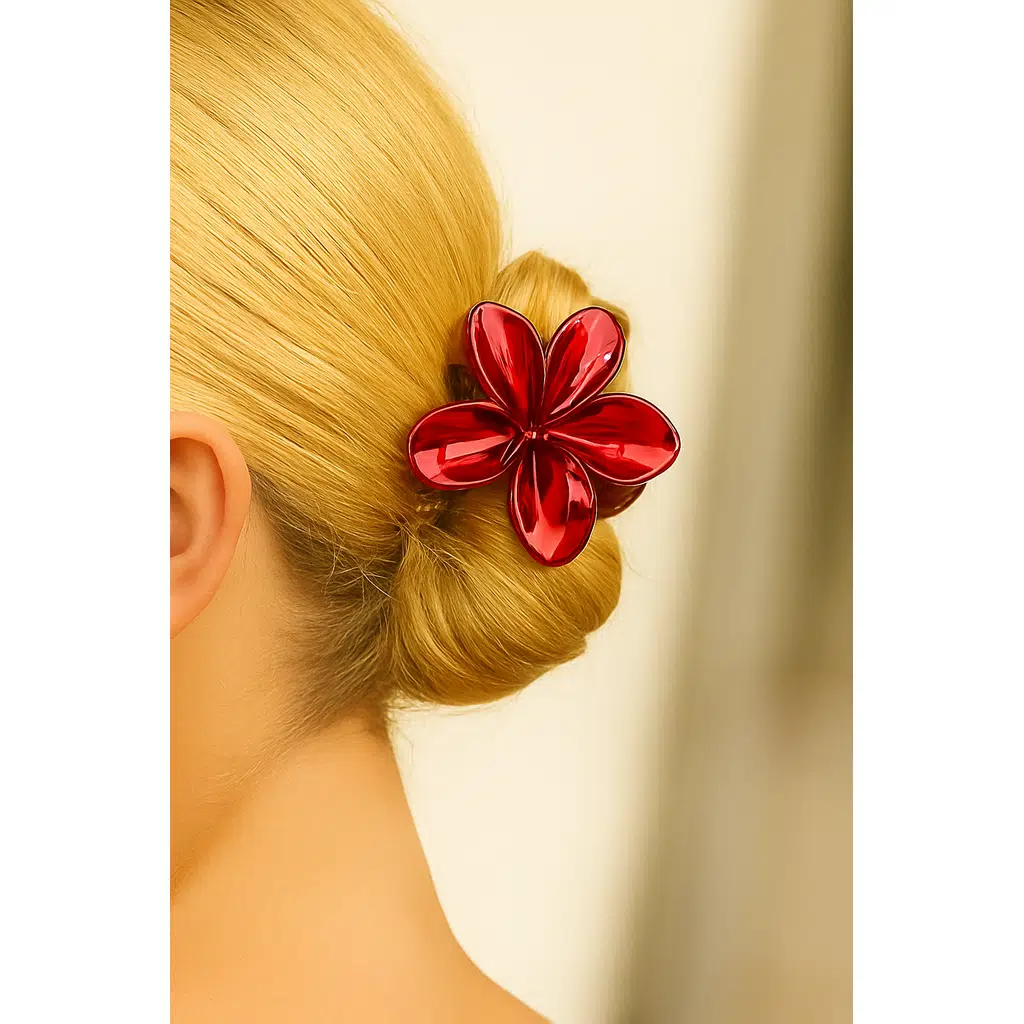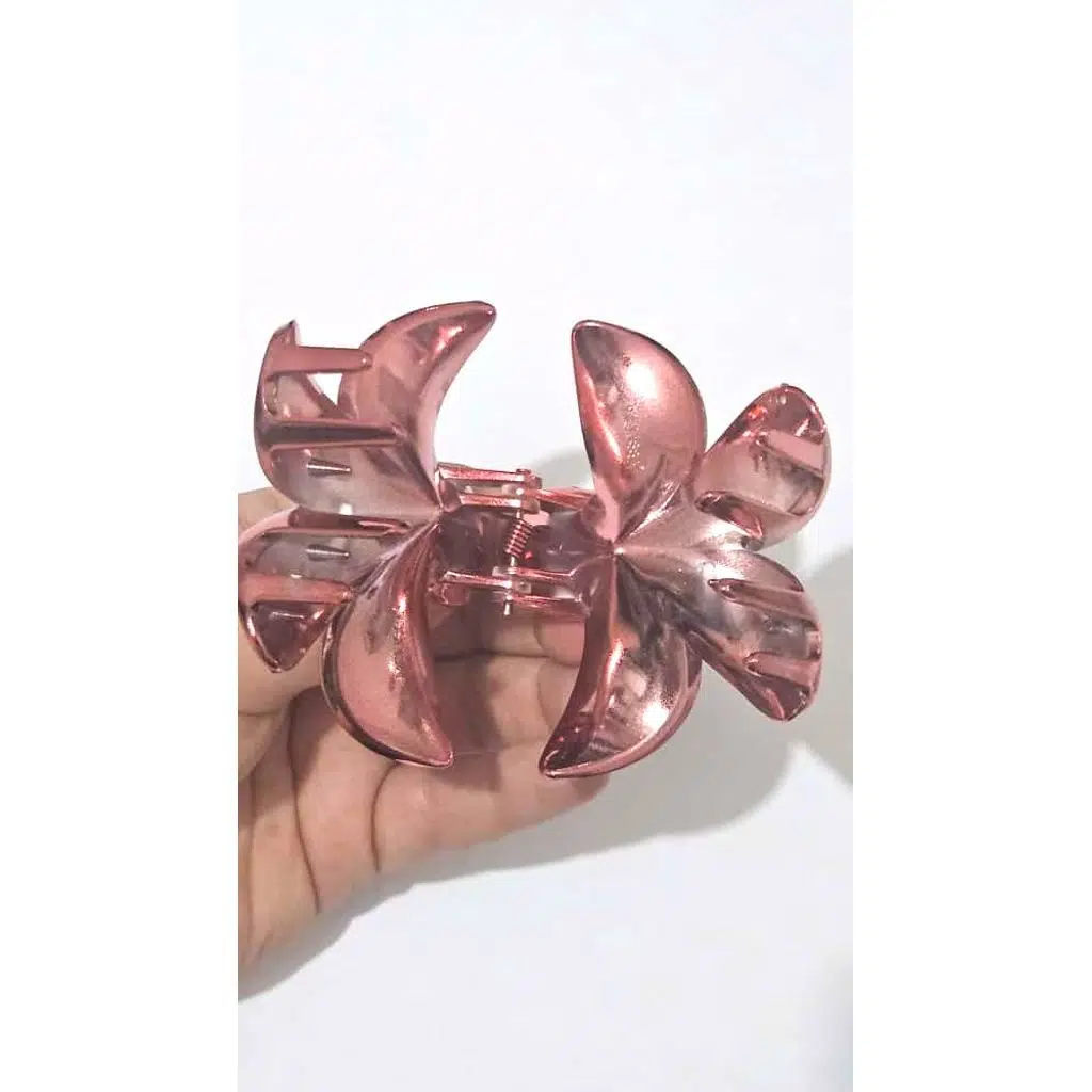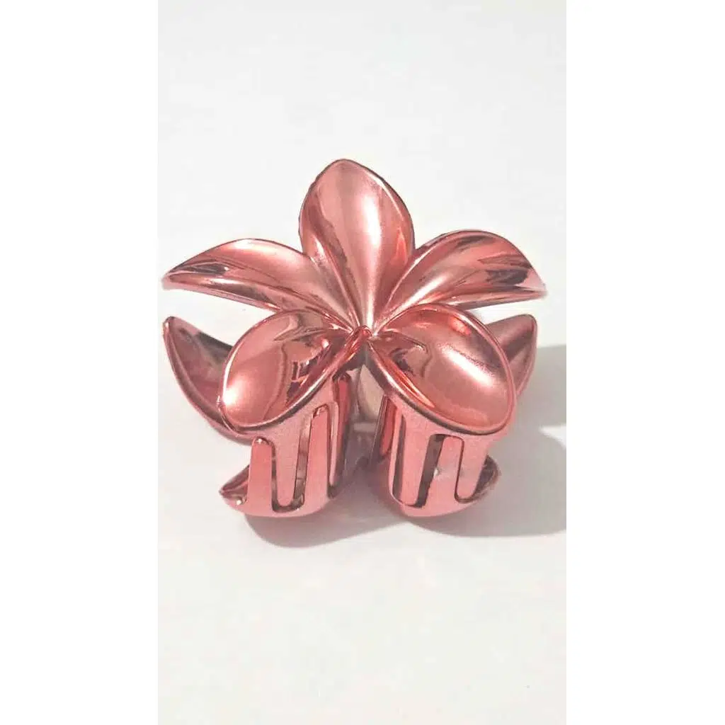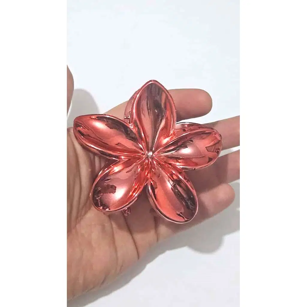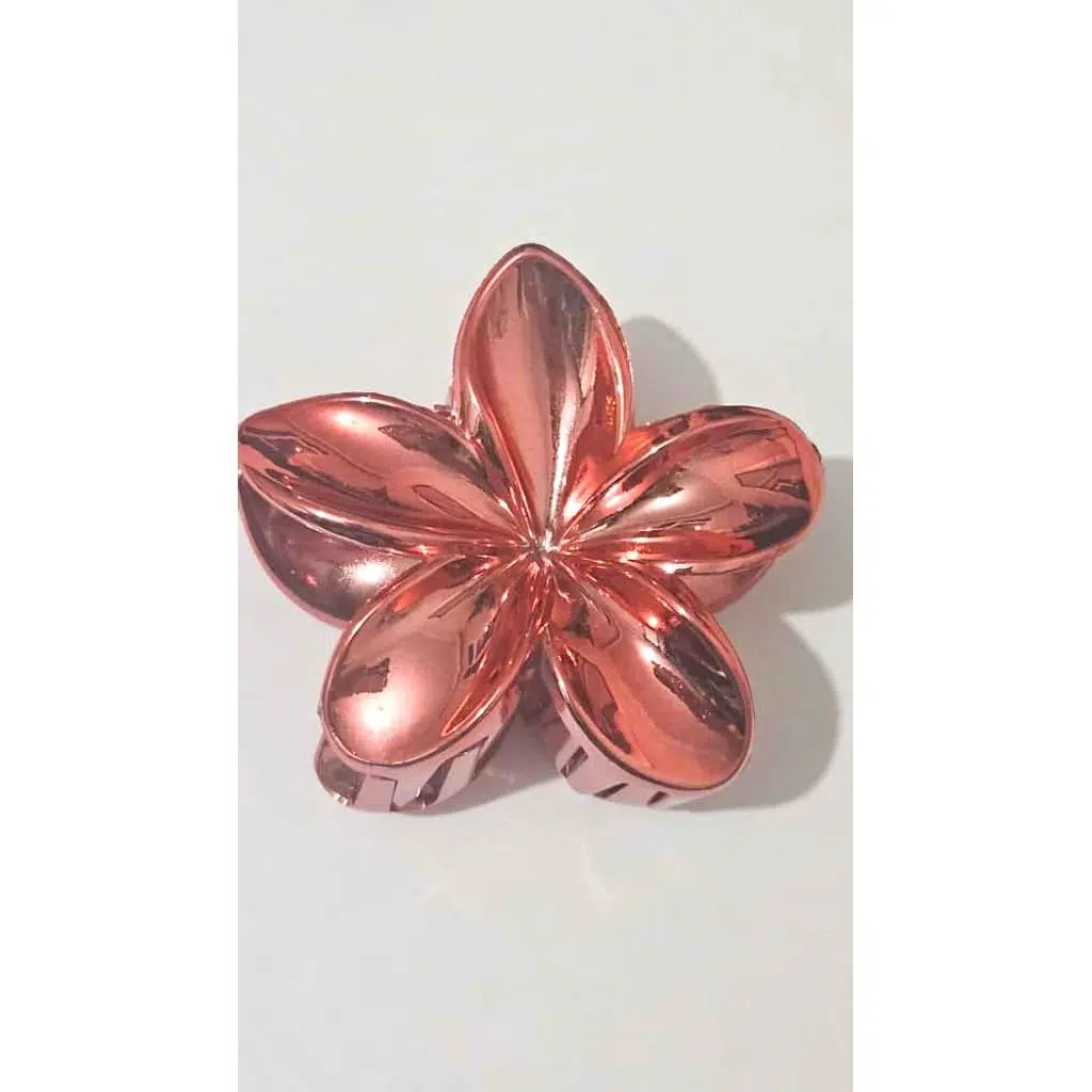 Metalik Nar Çiçeği Renk Lotus Mandal Saç Tokası 8 cm – Şık ve Dayanıklı