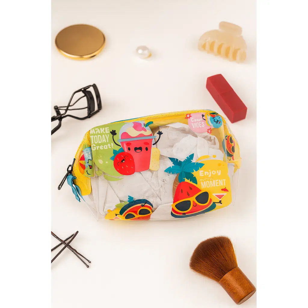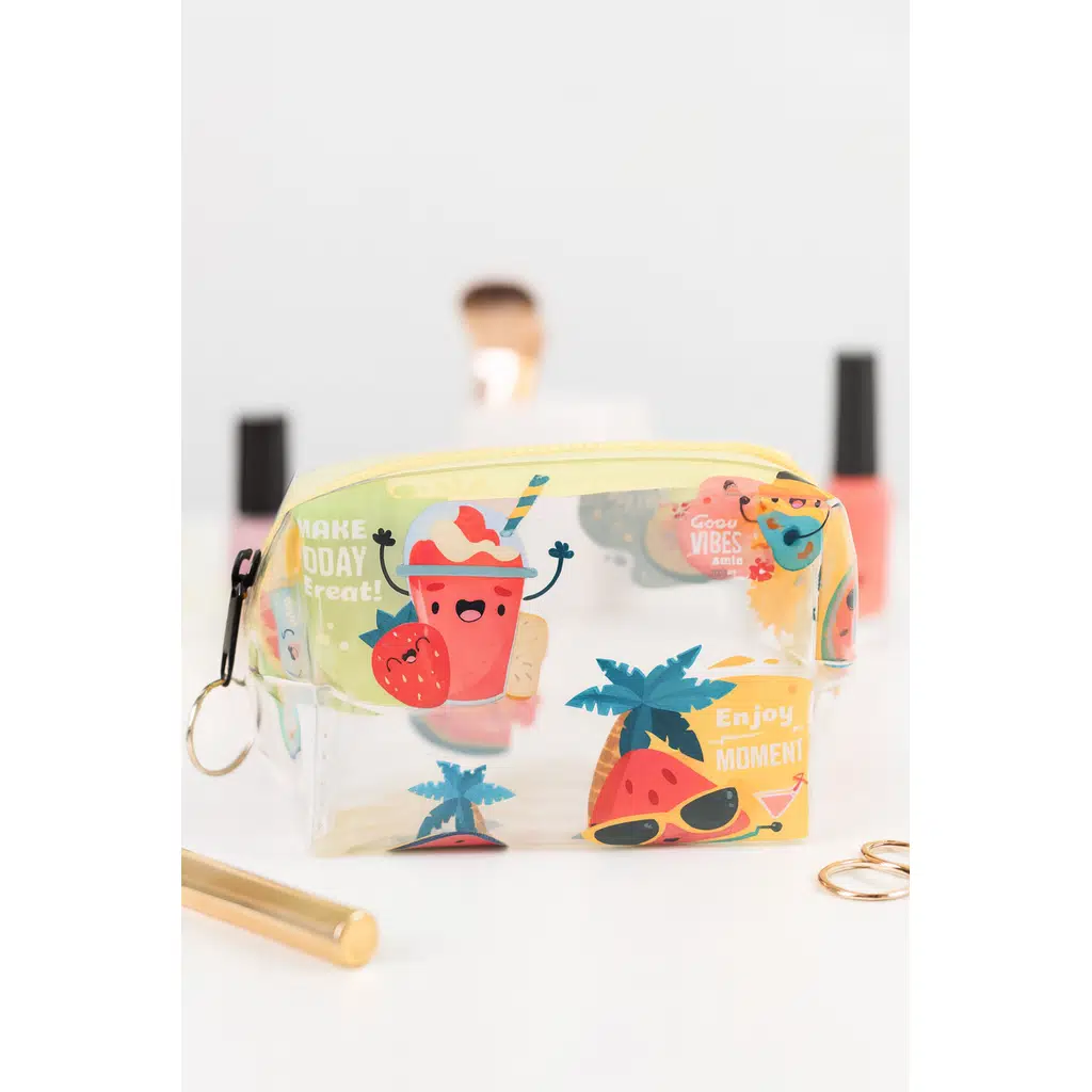 Meyve Figürü Desenli Şeffaf Fermuarlı Mini El ve Makyaj Çantası | 10x6 cm